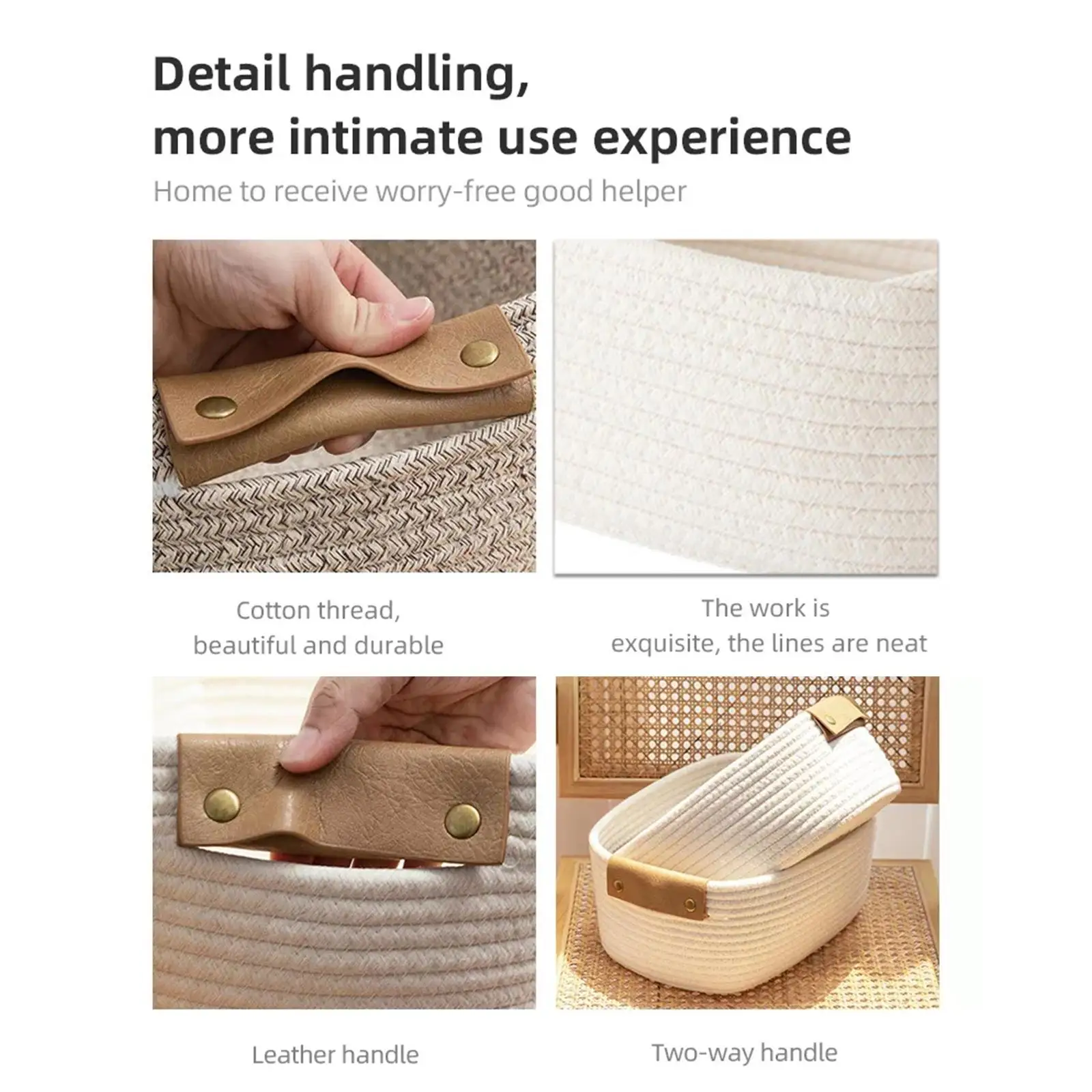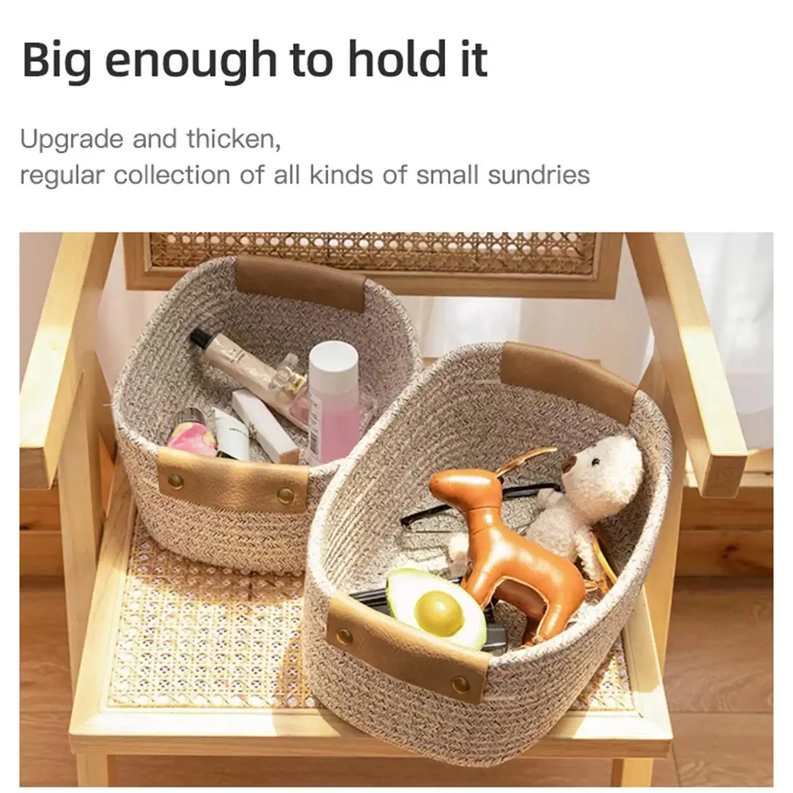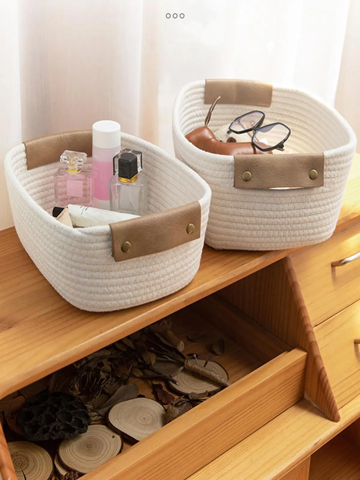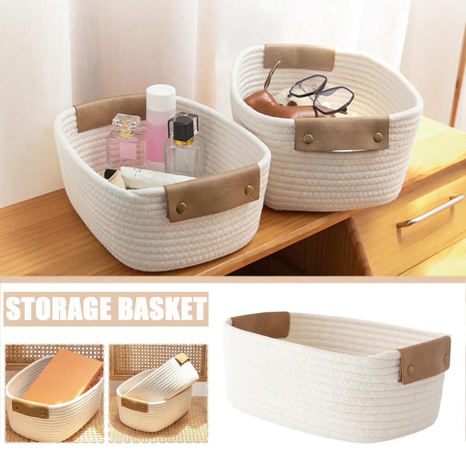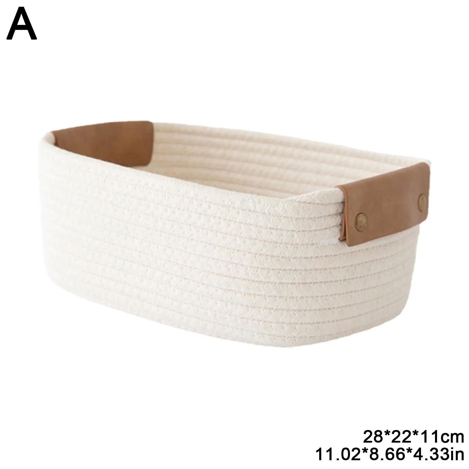 Плетеная корзина для хранения ручной работы из хлопчатобумажной веревки, настольный контейнер для хранения вещей, корзинка для косметики, органайзер для игрушек, коробка для белья, Stor V1K1