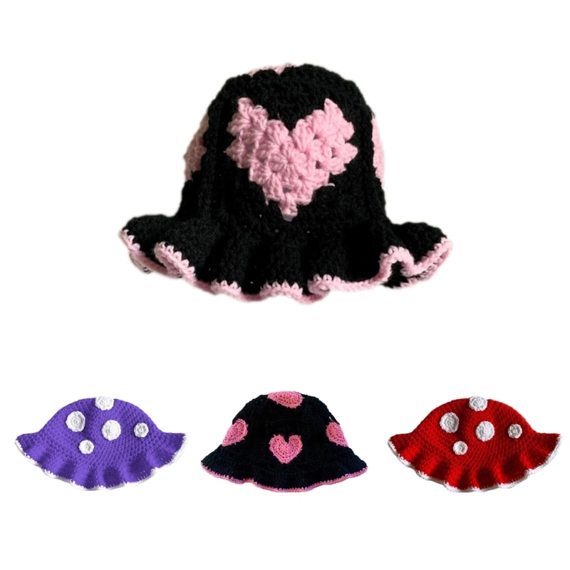 Женская трикотажная Панама: женская панама с элегантной трикотажной технологией, узором в виде сердечек, рюшами и полями, модная шляпа может легко подойти для женщин в разных стилях, модных и удобных.