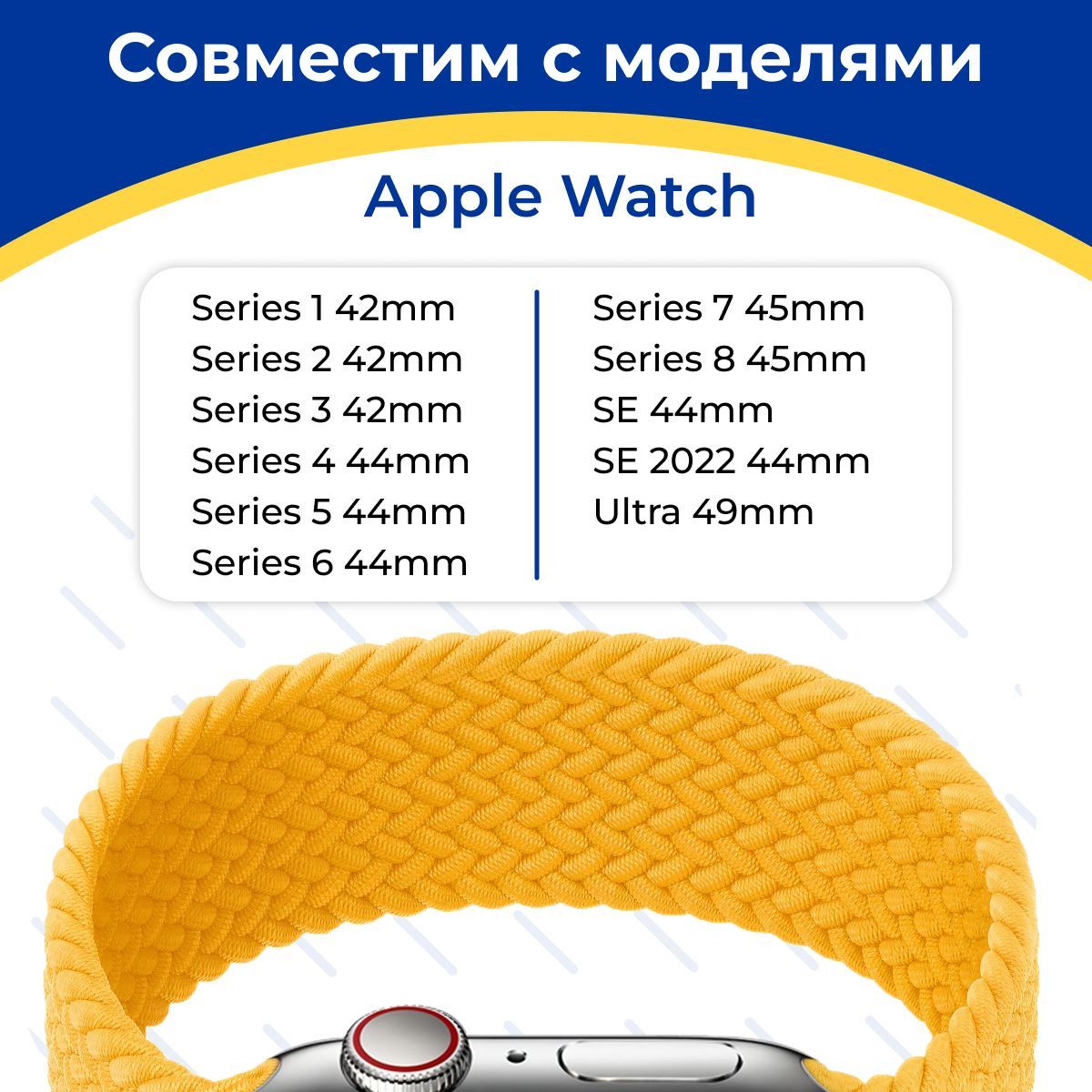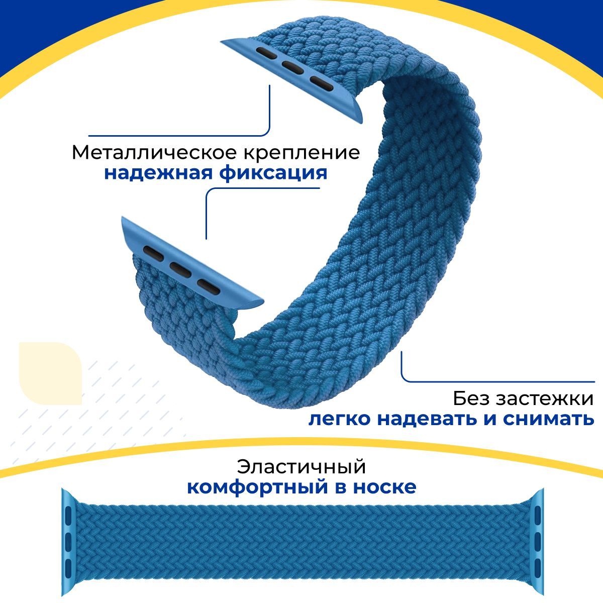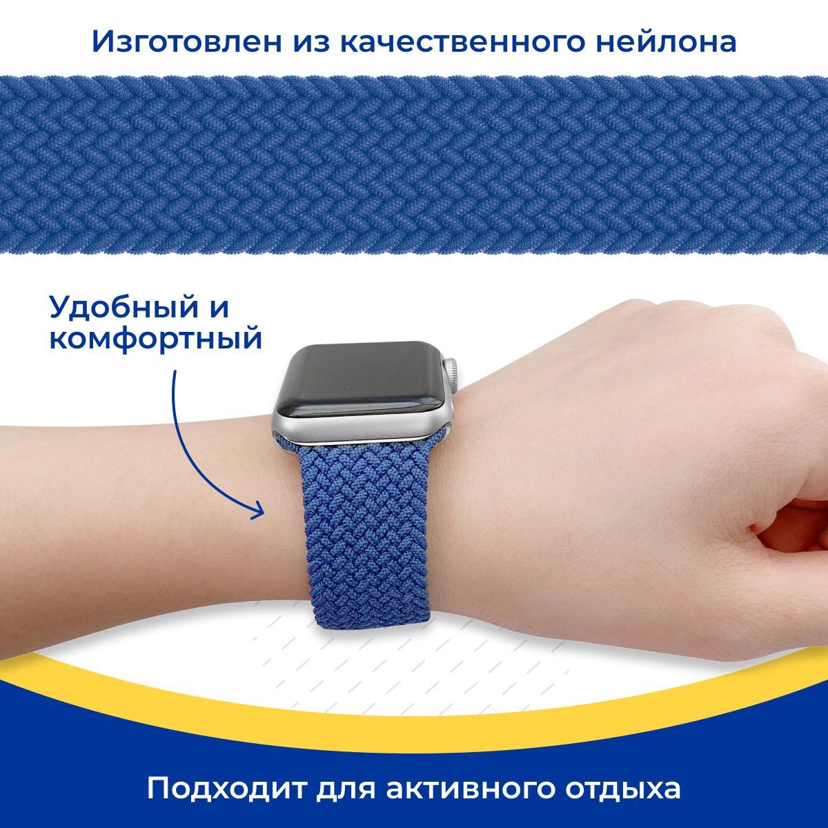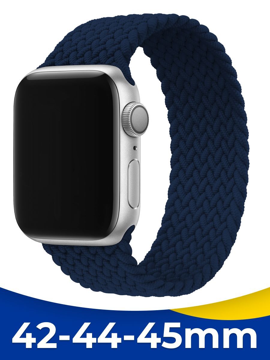 Плетеный ремешок для часов Apple Watch series 1-8 и Эпл Вотч SE Ultra 42-44-45-49 mm / Эластичный тканевый монобраслет Solo Loop (155mm), Темно-Синий