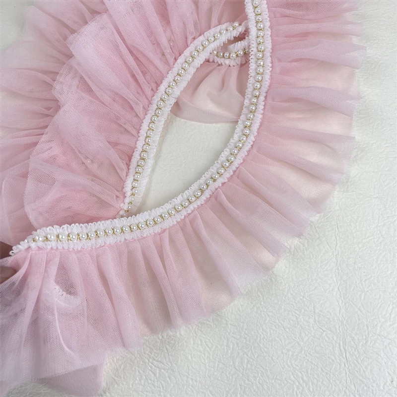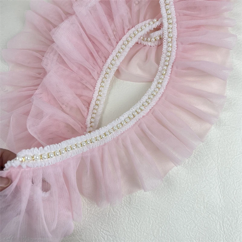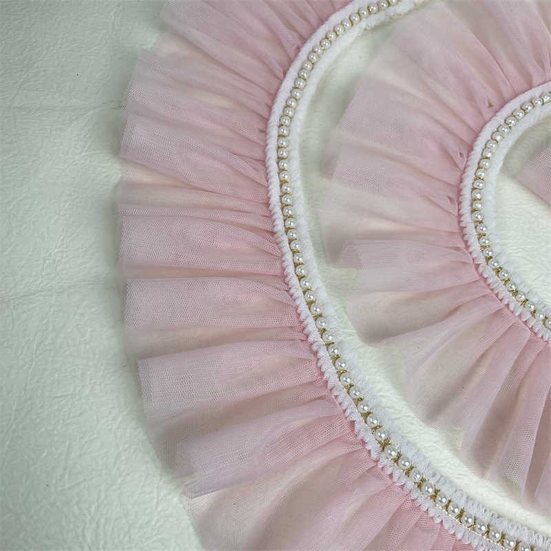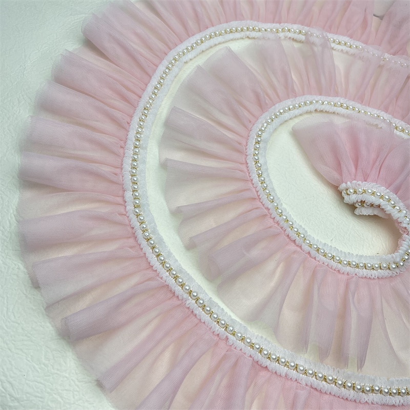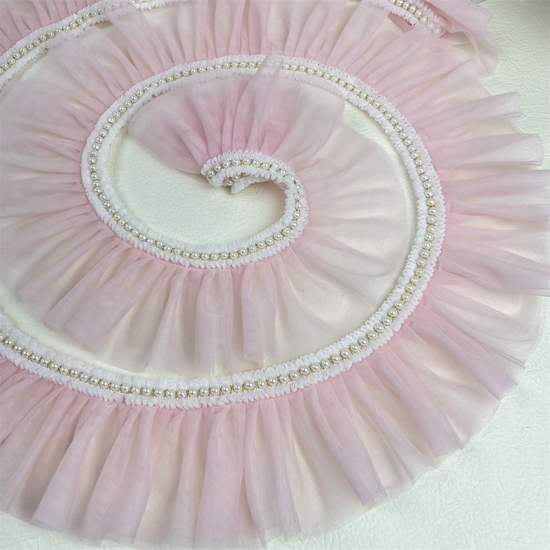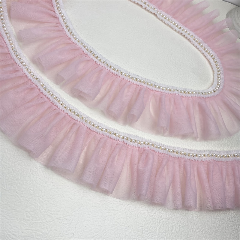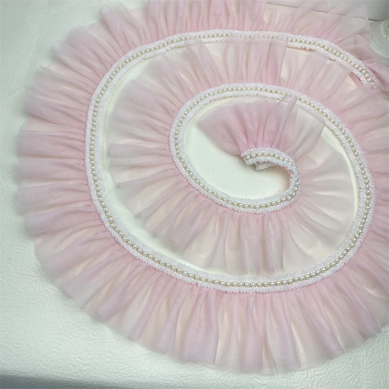 Плиссированное розовое кружево в стиле "Лолита" с отделкой бисером, «сделай сам», Детская Женская одежда, платье, юбка, подол, аксессуары для шитья