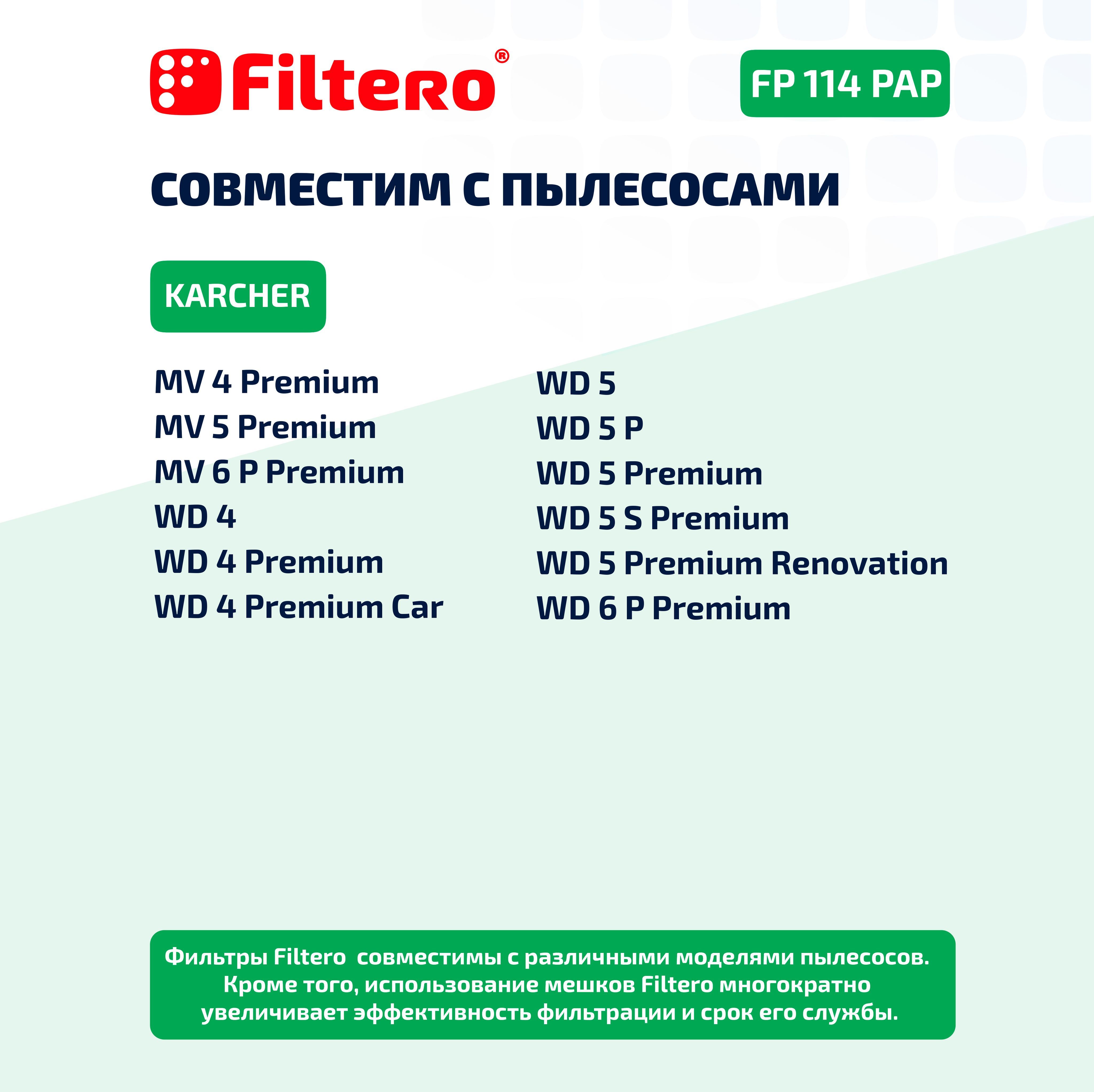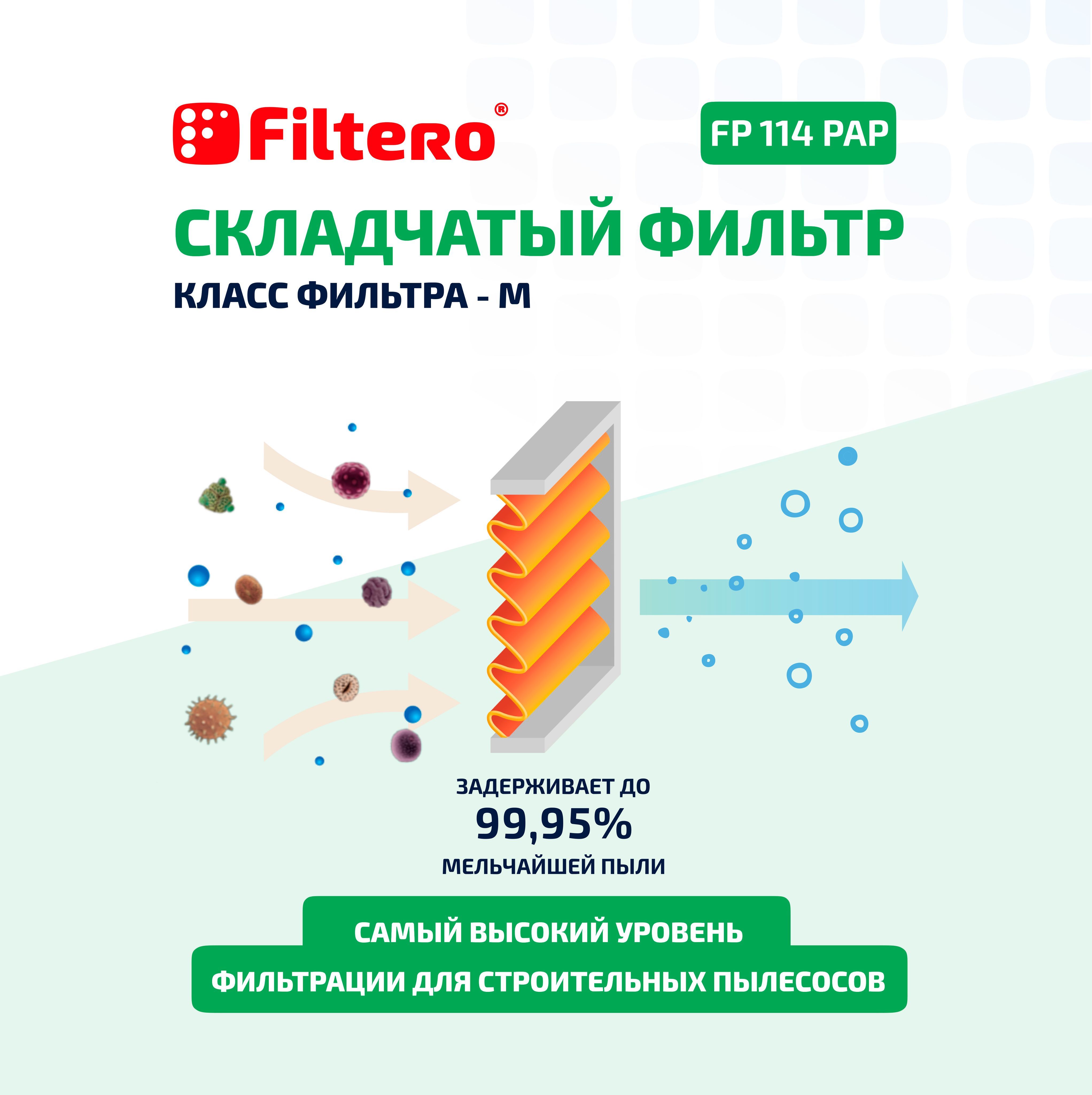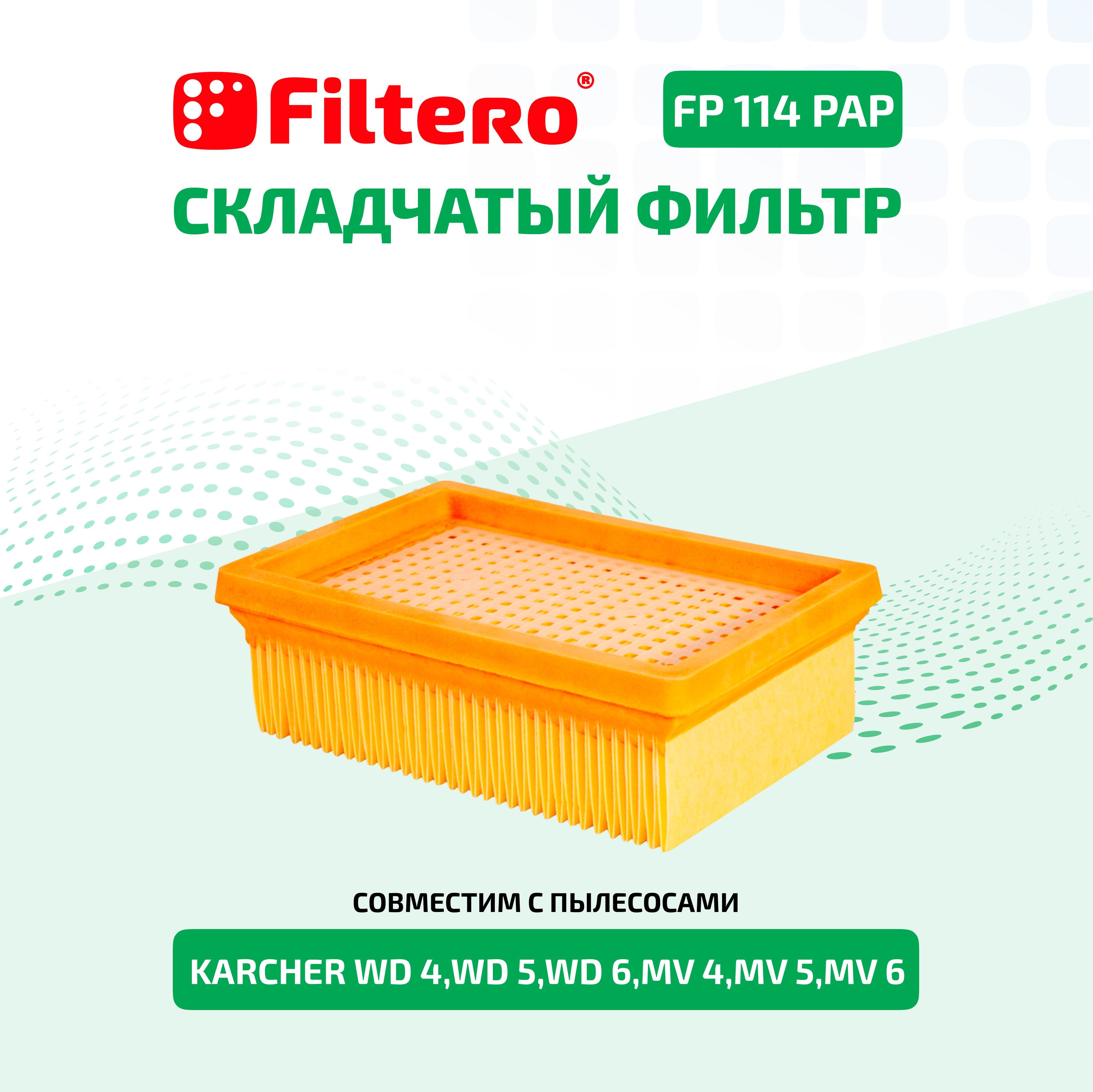 Плоский складчатый фильтр Filtero FP 114 PAP Pro для пылесосов Karcher WD 4, WD 5, WD 6, MV 4, MV 5, MV 6