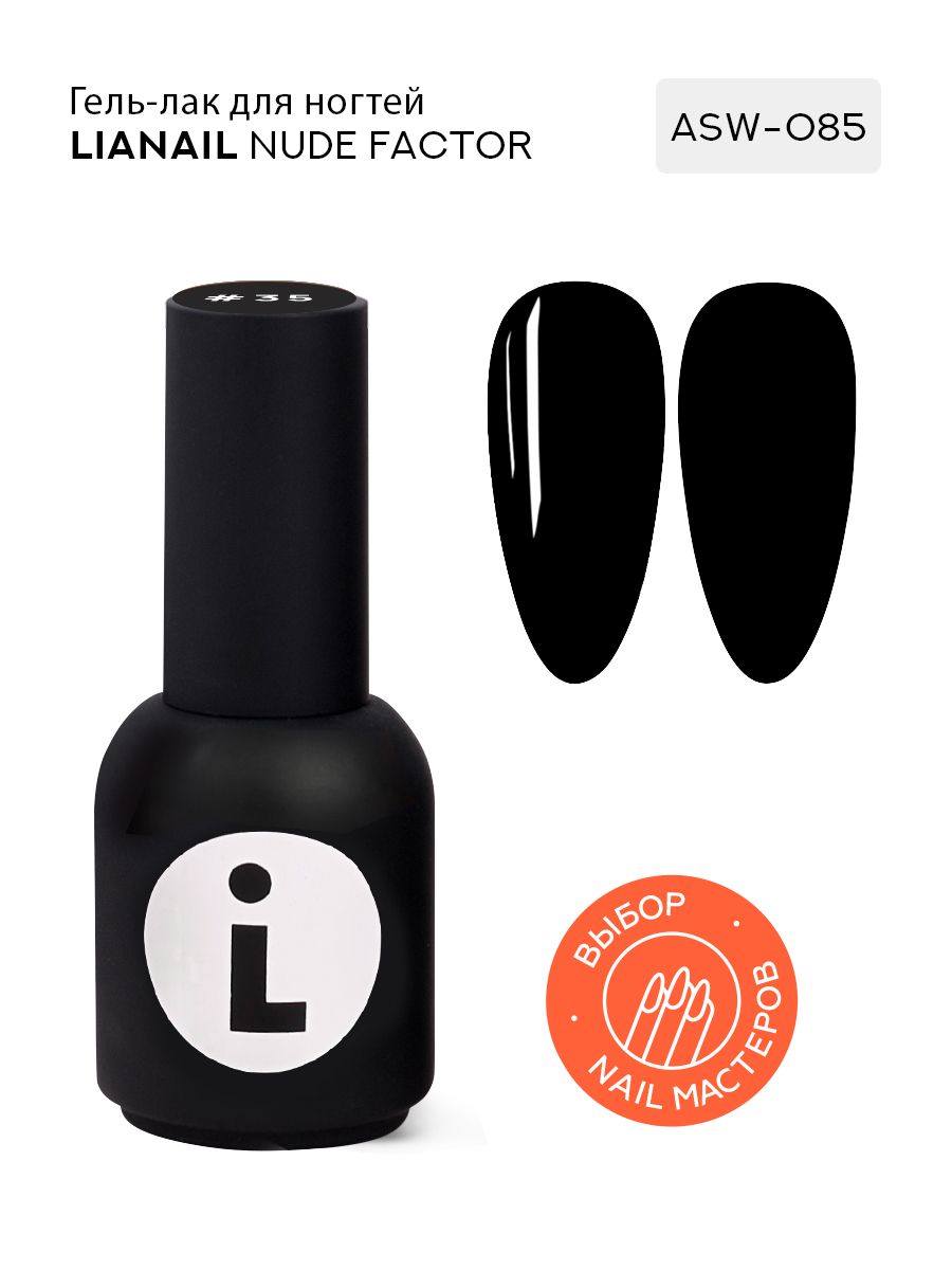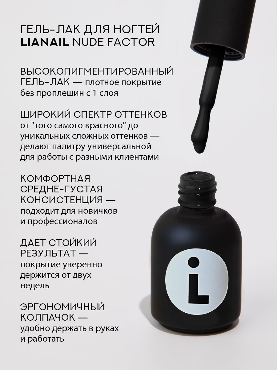 Плотный гель-лак LiANAiL черного оттенка Nude Factor с ярким глянцевым отливом и высокой пигментацией для покрытия ногтей и маникюра в минималистичной дизайнерской упаковке, 10 мл