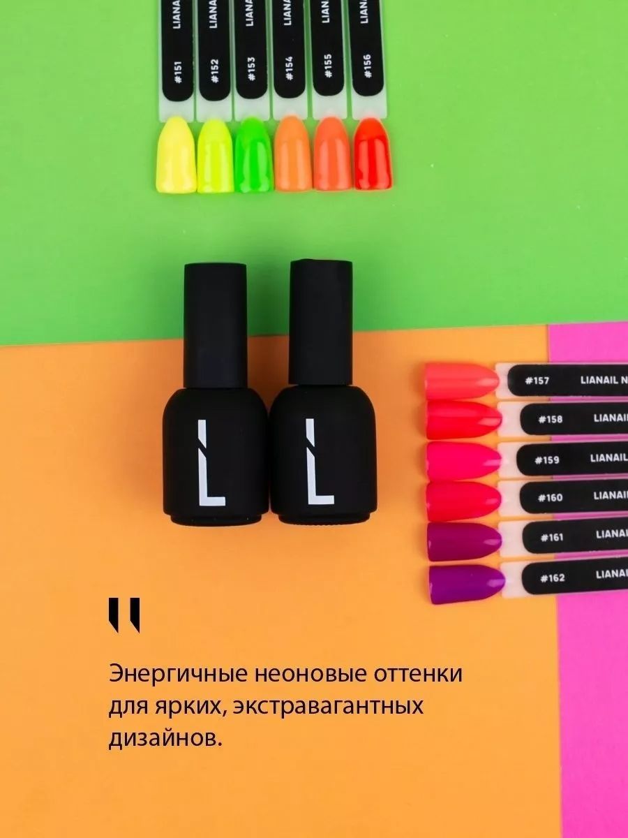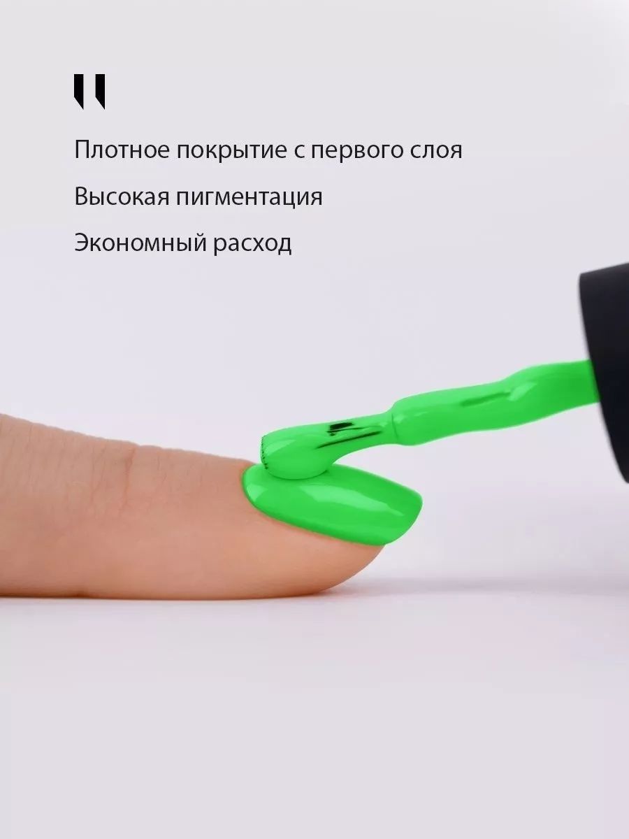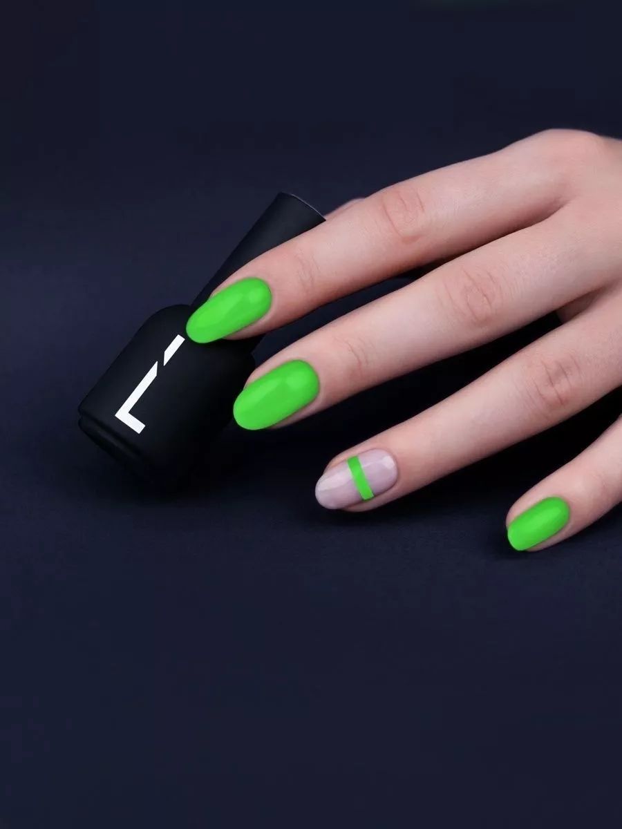 Плотный гель-лак LiANAiL зеленого оттенка Neon Factor с ярким глянцевым отливом и высокой пигментацией для покрытия ногтей и маникюра в минималистичной дизайнерской упаковке, 10 мл