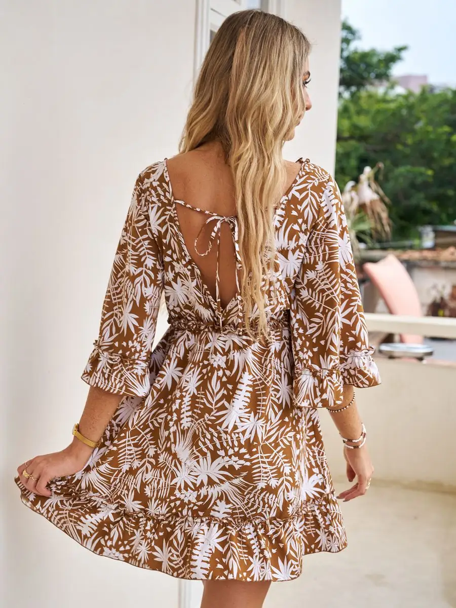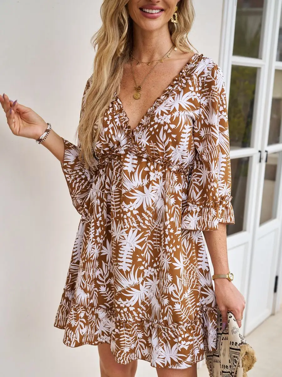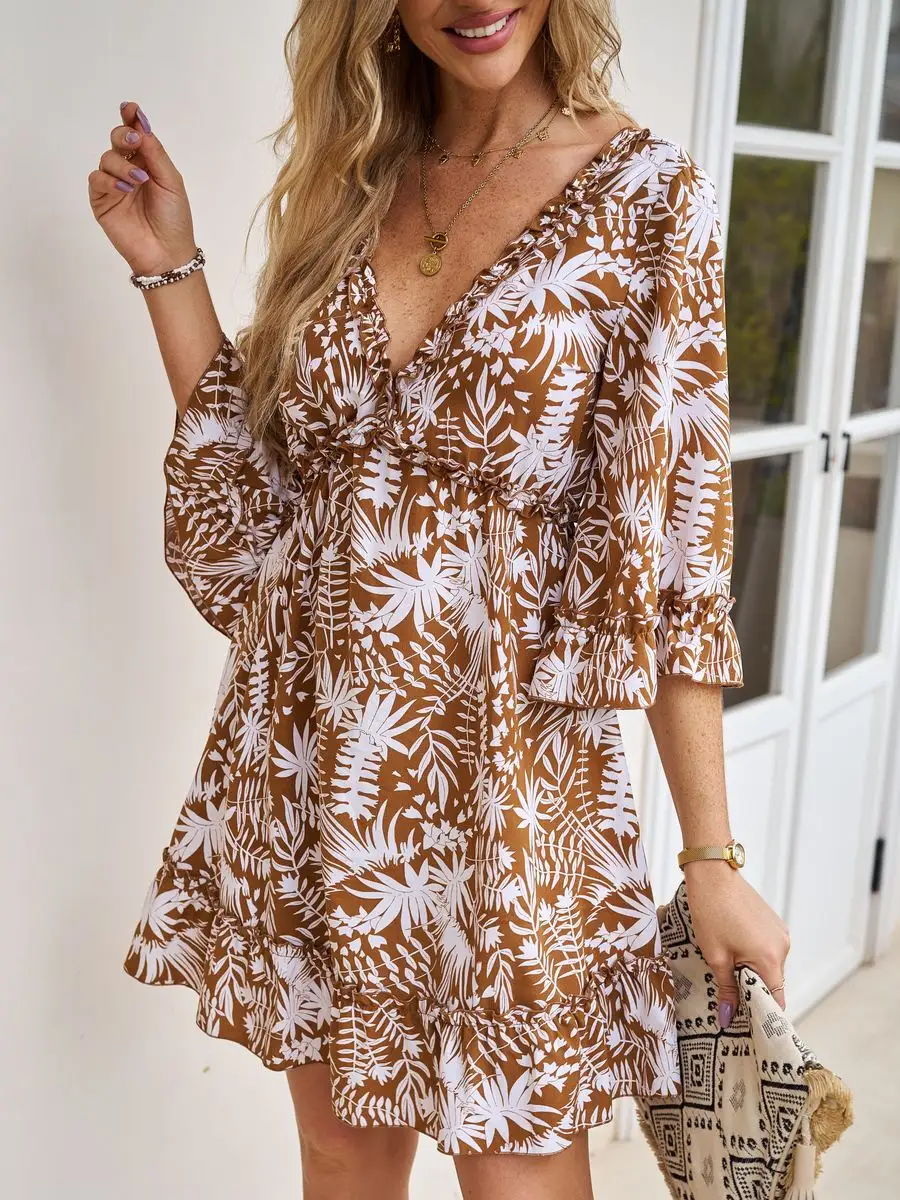 Описание: Пляжная туника станет универсальной вещью в вашем гардеробе - как в отпуске на море, так и в повседневной жизни. Благодаря уникальному дизайну платья с рюшами и свободному приталенному крою, вы сможете надеть летнюю тунику на пляж и на прогулку по городу, что делает вещь крайне функциональной. Фасон платья с удлиненными широкими рукавами 3/4 подходят для лета, не просвечивается, практически не мнется, и быстро высыхает, что особенно важно, ведь вы будете надевать летнюю накидку на купальник. Летнее платье будет подарком для тех, кто планирует поездку в отпуск. Легкая летняя туника с ярким принтом и узором в цветочек сделана из премиум ткани. Вы можете его носить как платье на лето или даже домашнее платье больших размеровь в стиле бохо и олд мани. Благодаря эластичной резинке под грудью оно подойдет как туника для беременных и кормящих. Оно сможет прослужить Вам, как домашнее платье, вместо скучного халата. Купив домашнюю тунику, вы будете сиять дома, создав романтичный образ. Кофейное коричневое платье женское станет любимой вещью, за счет своего современного трендового кроя с воланами и рюшами вместо пляжная рубашка из хлопка old money.