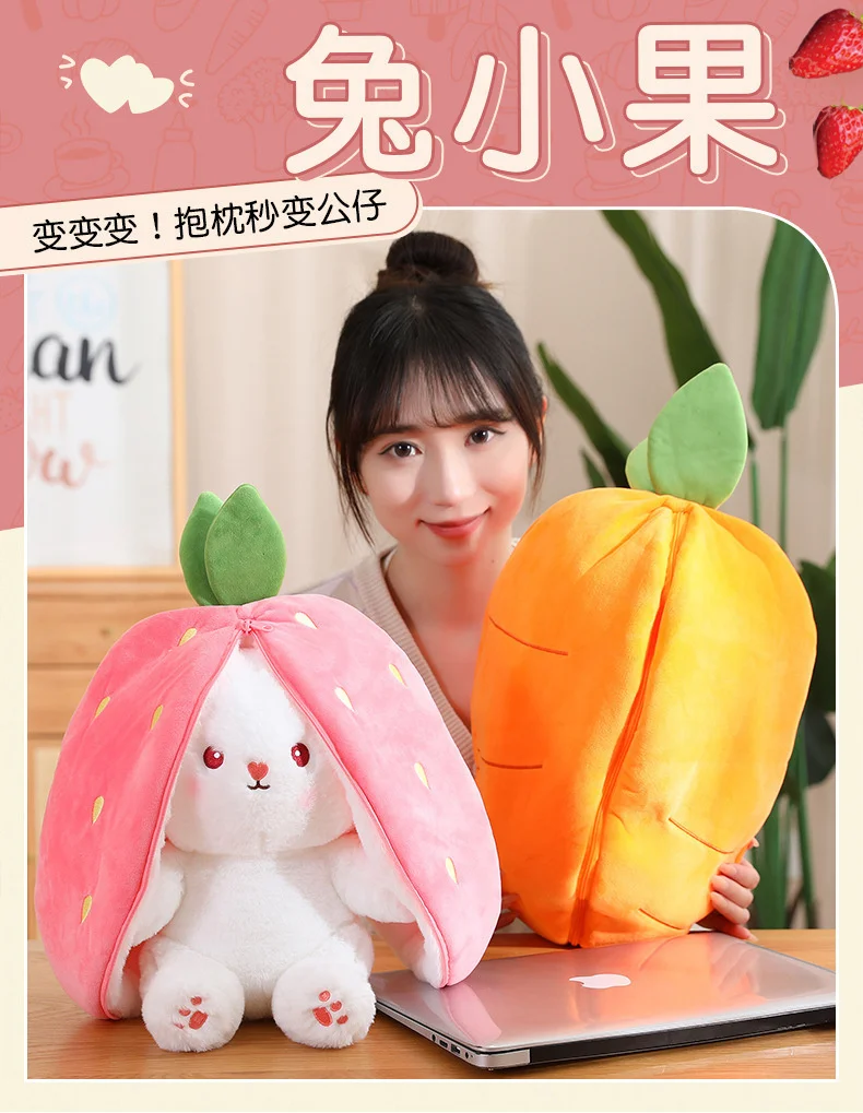 18/70 см креативная милая кукла морковь кролик плюшевая игрушка Мягкий Кролик прячется в клубничной сумке игрушки Детский подарок на день рождения для девочек