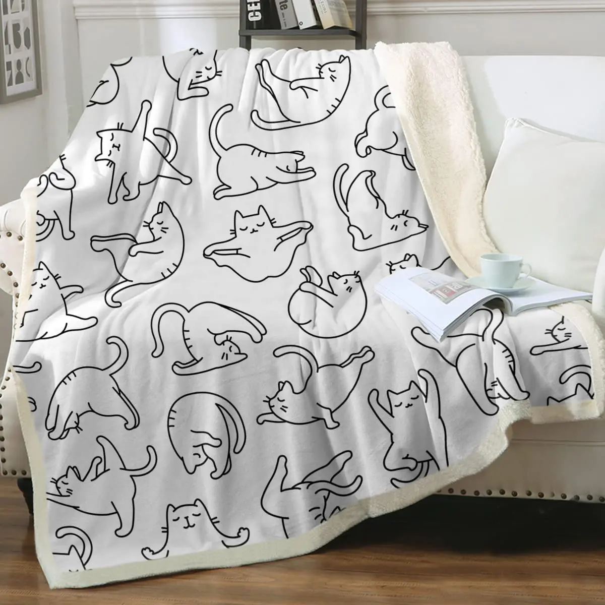 Плюшевое фланелевое одеяло с серой и белой кошкой