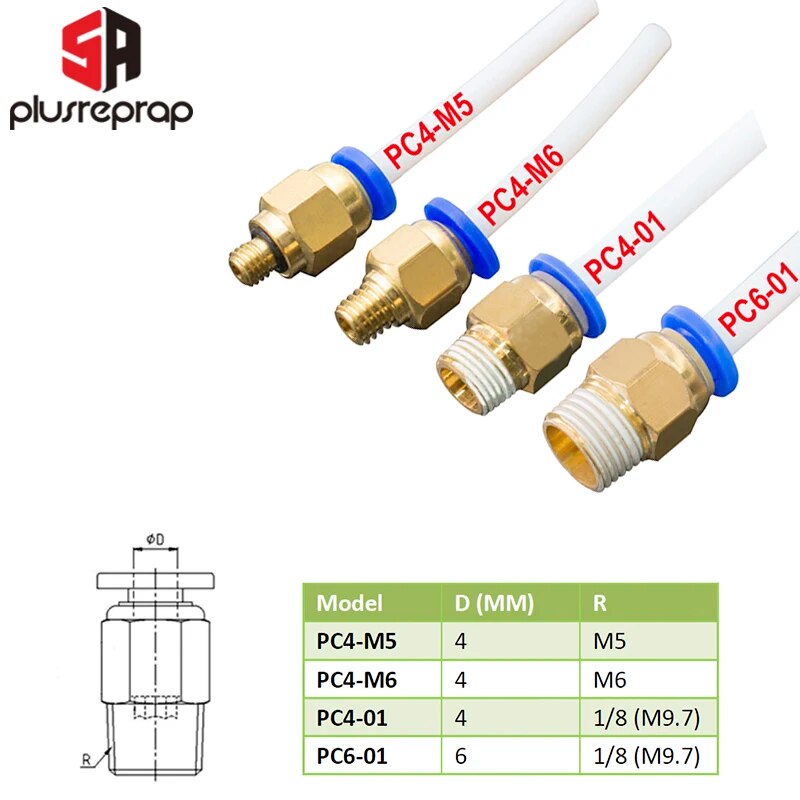 * Размер PC4-M6: подходит для внешней трубы диаметром 4 мм из ПТФЭ