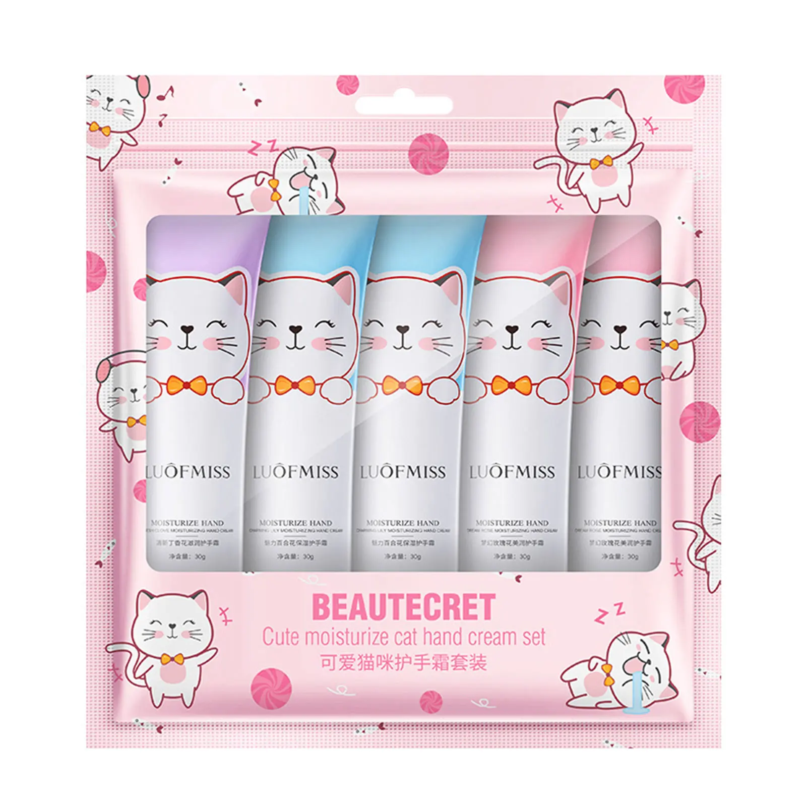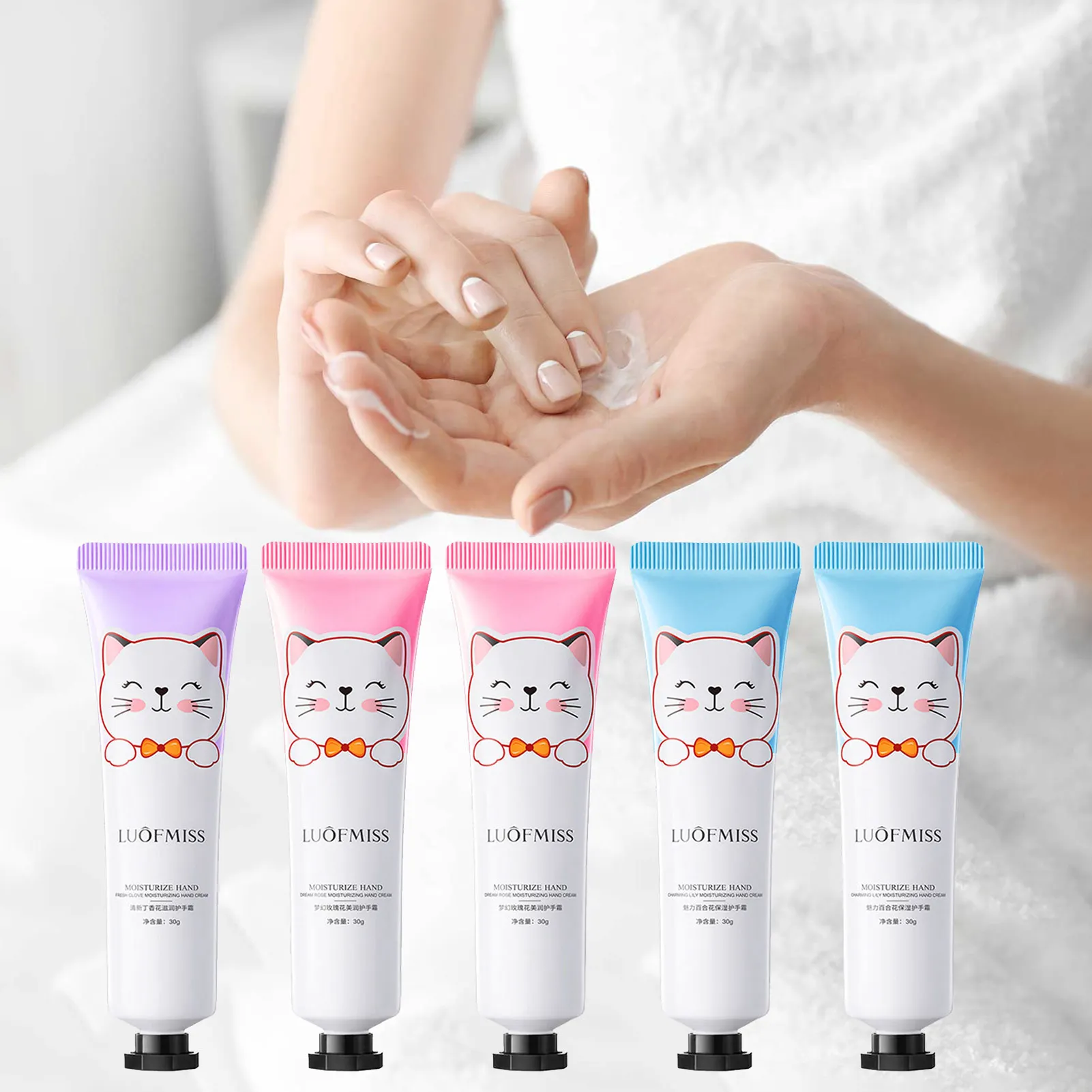 Каждый из пяти комплектов крема для рук имеет красивый внешний вид. Крем для рук деликатный и может использоваться в любое время года для ухода за кожей рук и пополнения влаги.