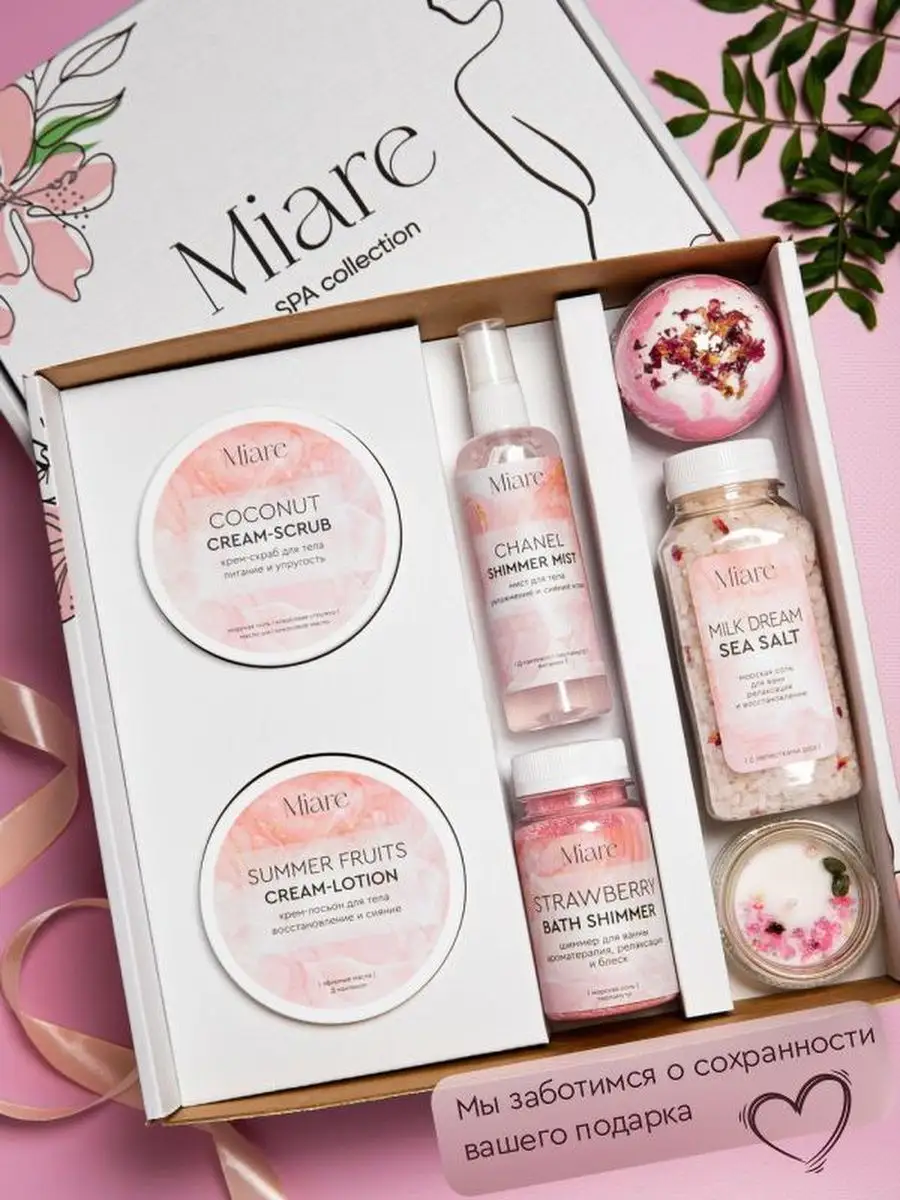 Артикул 166272491 Состав скраб, крем-лосьон, соль для ванн, бурлящий шар для ванн, шиммер, мист, свеча, открытки