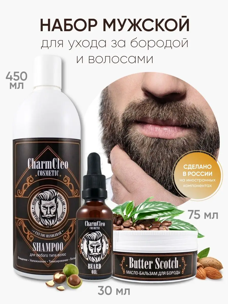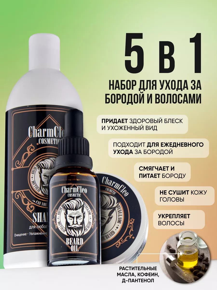 Комплектация Масло для бороды и усов 30 мл - 1 шт; Бальзам для бороды и усов 75 мл - 1 шт; Шампунь мужской 450 мл - 1 шт