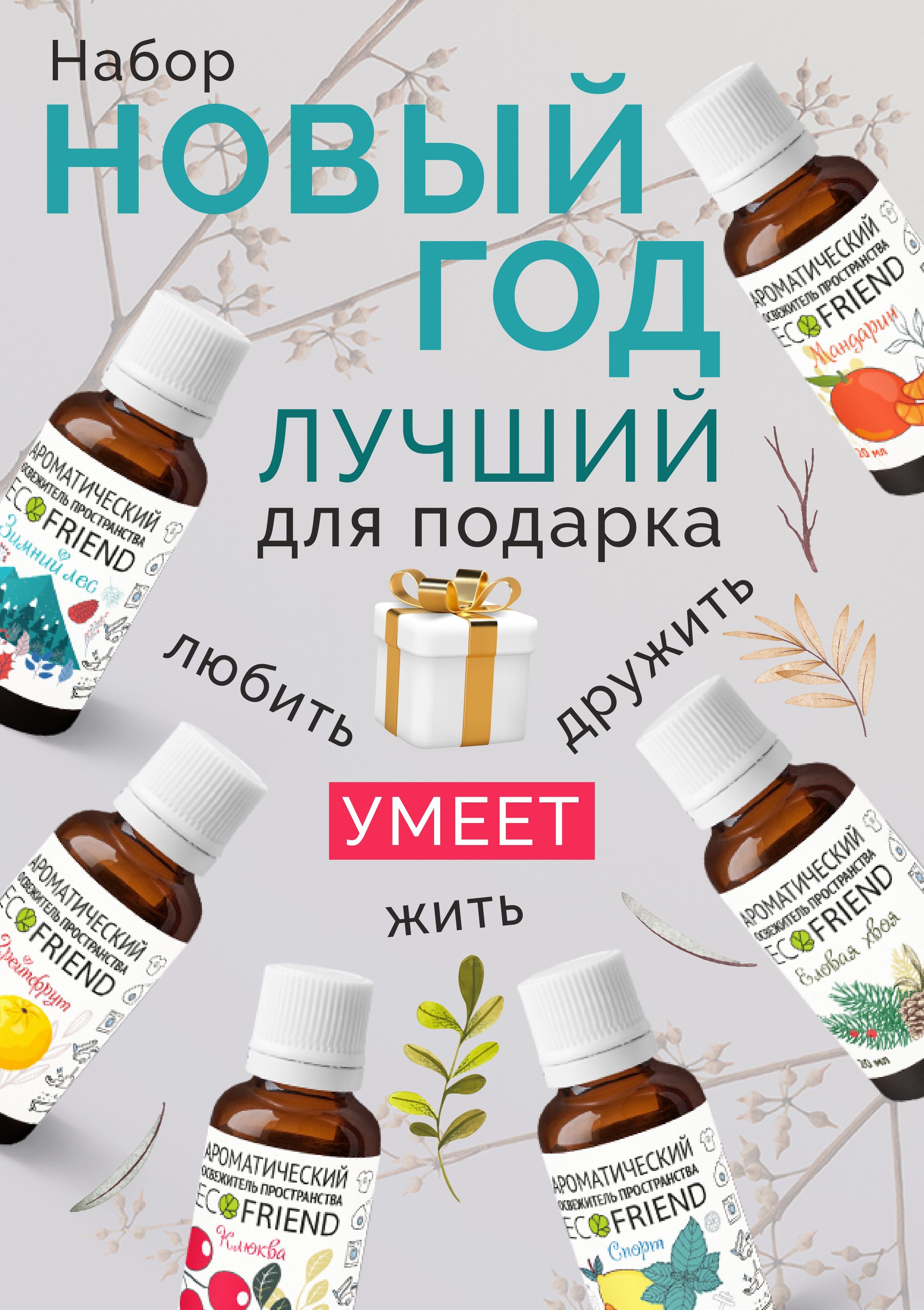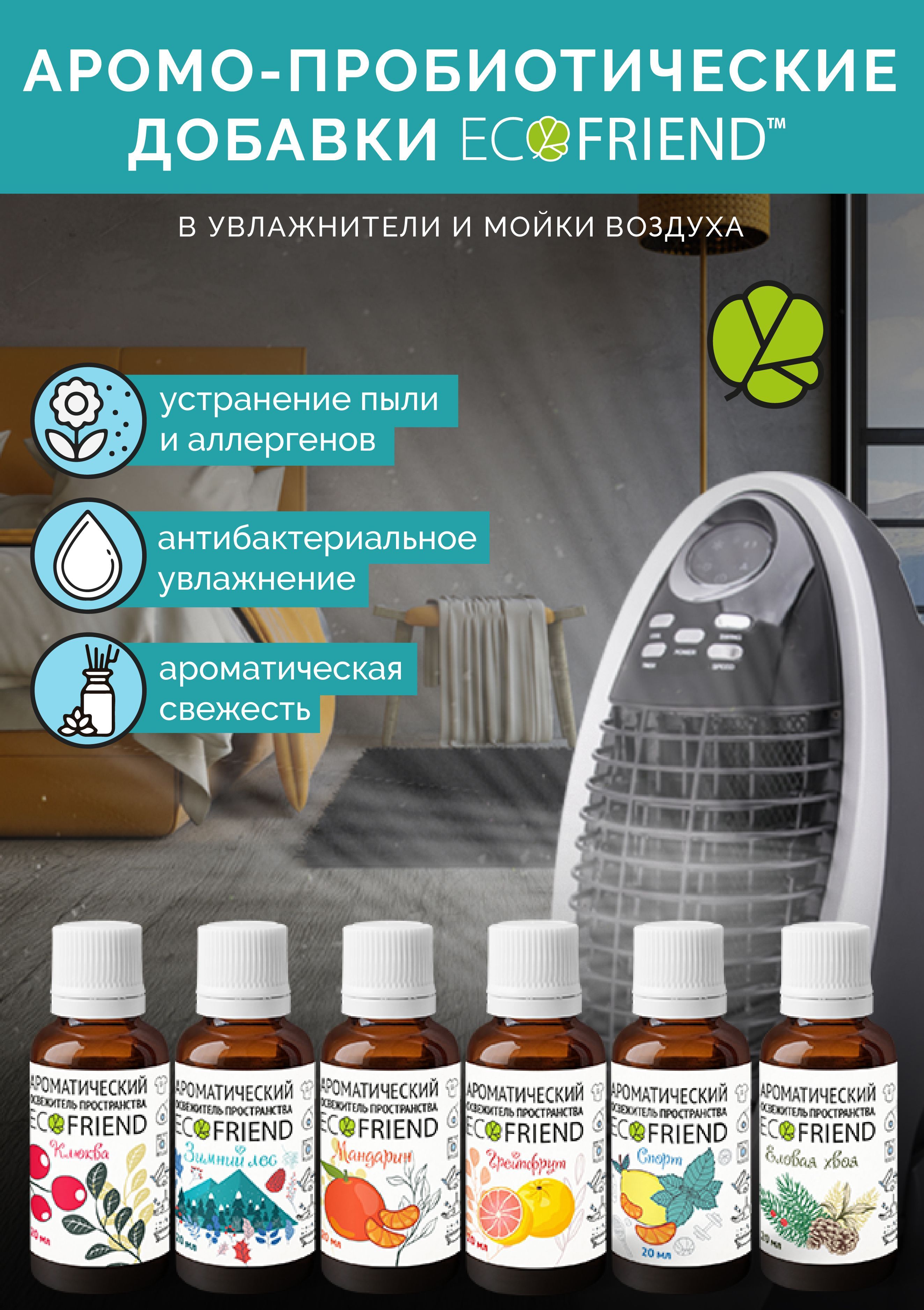 Описание: Добавки в воду т.м. ECOFRIEND набор НОВЫЙ ГОД+, для увлажнителя и мойки воздуха созданы для защиты жизненного пространства человека от негативного воздействия окружающей среды. Убирает неприятные запахи из воздуха, микробы и вирусы.