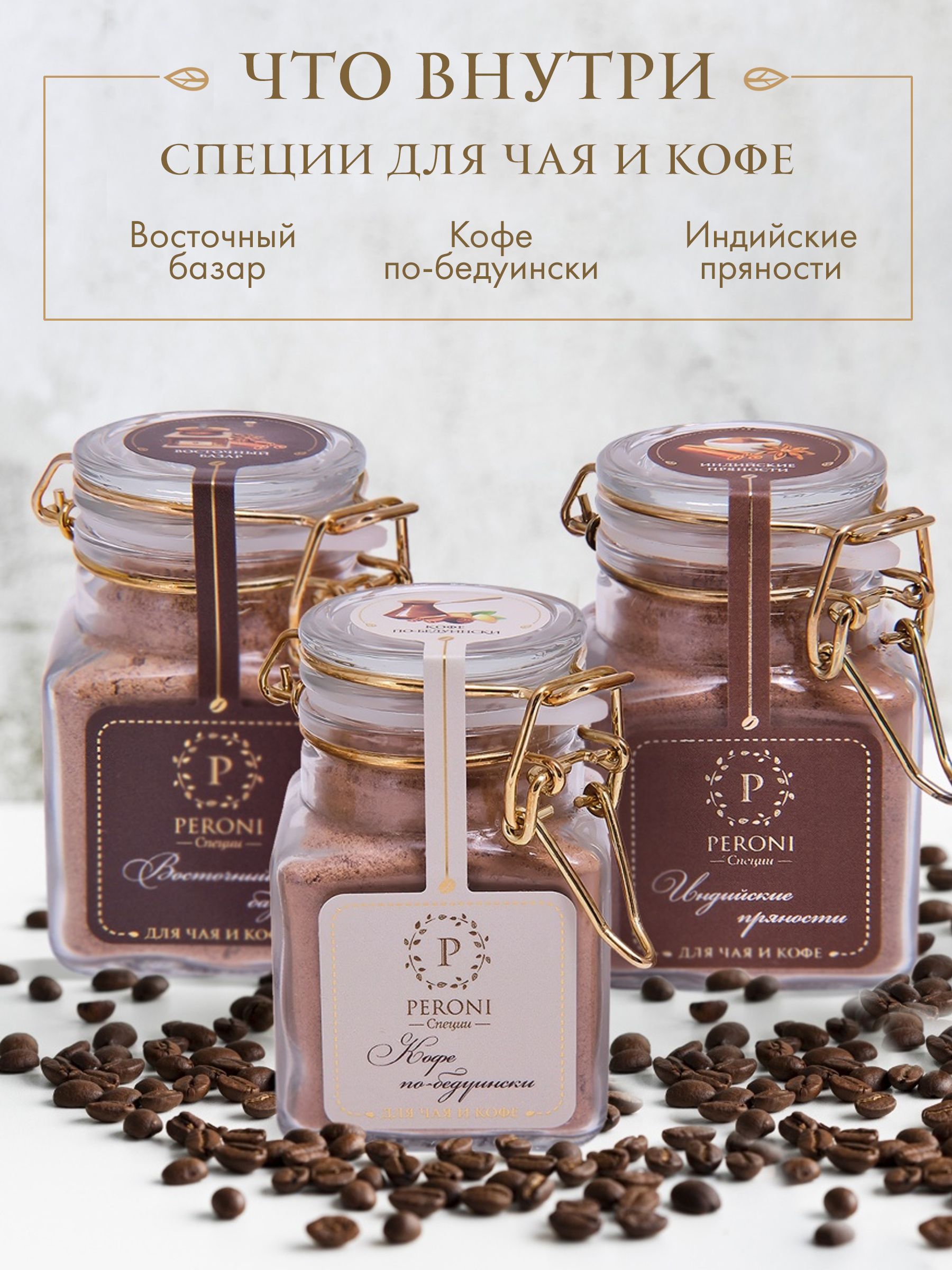 Мы объединили самые популярные приправы для напитков, таких как "Восточный базар", "Индийские пряности" и "Кофе по-бедуински".