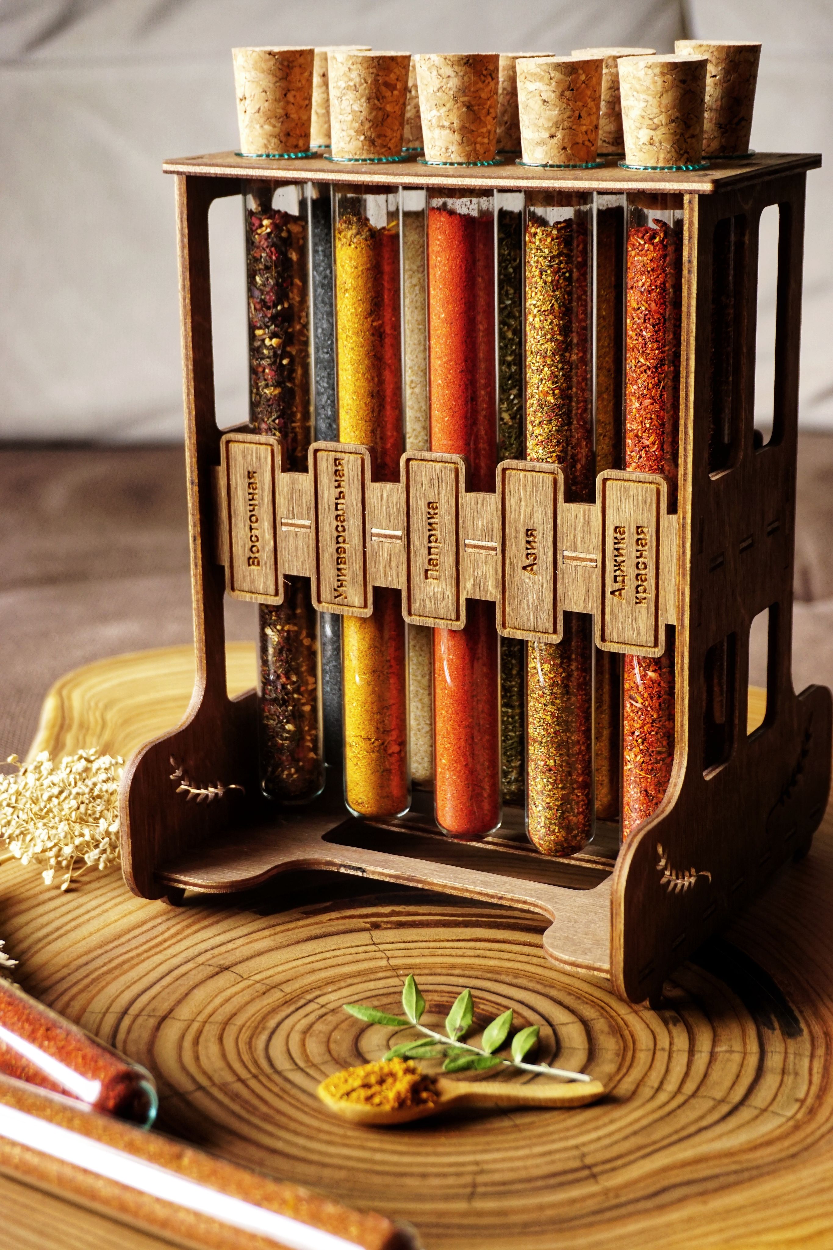 Описание: Подарочный набор специй "Великий эликсир" серии "Алхимик" порадует профессионалов и любителей приготовления разнообразных блюд, ведь содержит такой богатый арсенал приправ для придания яркого вкуса и аромата мясным, овощным и прочим блюдам, соусам и маринадам. Большие стеклянные колбы объемом 60 мл плотно закупорены корковой пробкой и надежно закреплены на деревянной подставке с полочкой для фиксации. Подставка для хранения специй выполнена из березовой фанеры, толщиной 4мм, тщательно отшлифованной до гладкого состояния и покрытой морилкой цвета «Орех». Табличка на лицевой части с выгравированными названиями приправ не даст перепутать пробирки. Набор специй содержит большой выбор приправ: Смесь для мяса (перец черный , паприка, жареный кориандр, пажитник, сумах, прованские травы), Смесь для курицы (куркума, чаман молотый, ухцо-сунели молотая, чеснок), Смесь для рыбы (имбирь, эстрагон, розмарин, сумах), Сушеный гранулированный чеснок, Черная соль Костромская четверговая среднего помола, Аджика красная (перец чили, паприка сладкая, чеснок, соль, чабер), Смесь Восточная (лук, парика, кондари, базилик), Смесь Универсальная (паприка, черный и душистый перцы, имбирь, базилик, сельдерей, чеснок, хмель, уцхо-сунели, шафран), Смесь Азия (чеснок, укроп, перец красный), Паприка молотая красная. В комплекте смеси ароматных и отборных специй из Абхазии, Испании, России. Универсальный кулинарный подарок на любой повод. Название серии было выбрано неспроста. Алхимия - это учение о превращении одних вещества в другие. Главной целью алхимиков всегда был поиск философского камня - субстанции, из которой можно приготовить эликсир, способный вылечить любую болезнь и даже вернуть человеку молодость. Великий эликсир был также известен как «Сущность жизненной силы», одна капля которого способна была исцелять и наполнять молодостью и энергией организм. Наравне с такой ассоциацией и наш набор специй в стеклянных колбах с пробкой поможет создать тот самый эликсир в домашних условиях. Больше полезных подарков для приготовления любимых вкусняшек выбирайте в нашем каталоге.