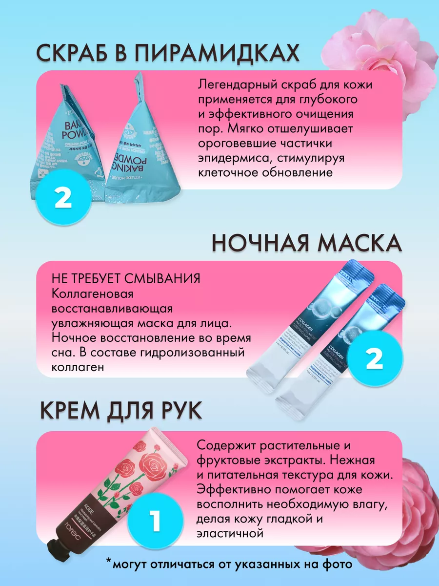 Комплектация Тканевые маски - 5шт; Крем для рук - 1шт; открытка - 1шт