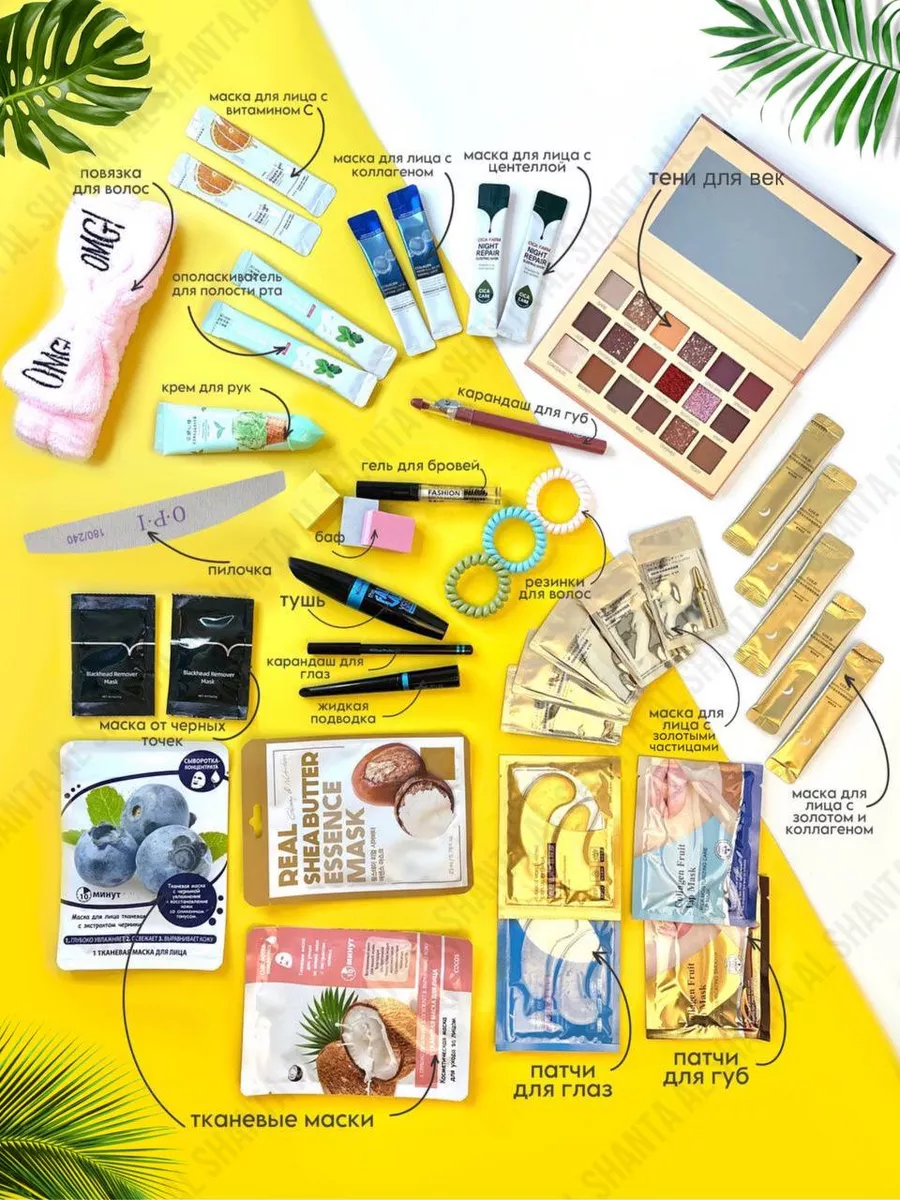 Артикул 172877885 Состав маски для лица; декоративная косметика; патчи для губ; крем для рук; повязка для волос