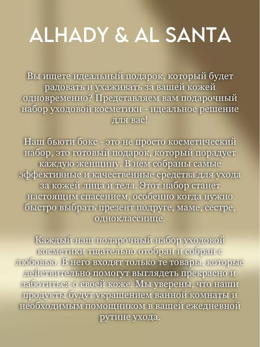 Комплектация Универсальный подарочный набор уходовой косметики для девушки; подарочный набор уходовой косметики; Подарочный набор уходовой косметики для женщин; бьюти бокс; готовый подарочный набор; косметика для макияжа; Набор косметики; Бокс с косметикой; Косметика; Подарочный набор для женщин; Боксы косметики без масок; Бокс косметики
