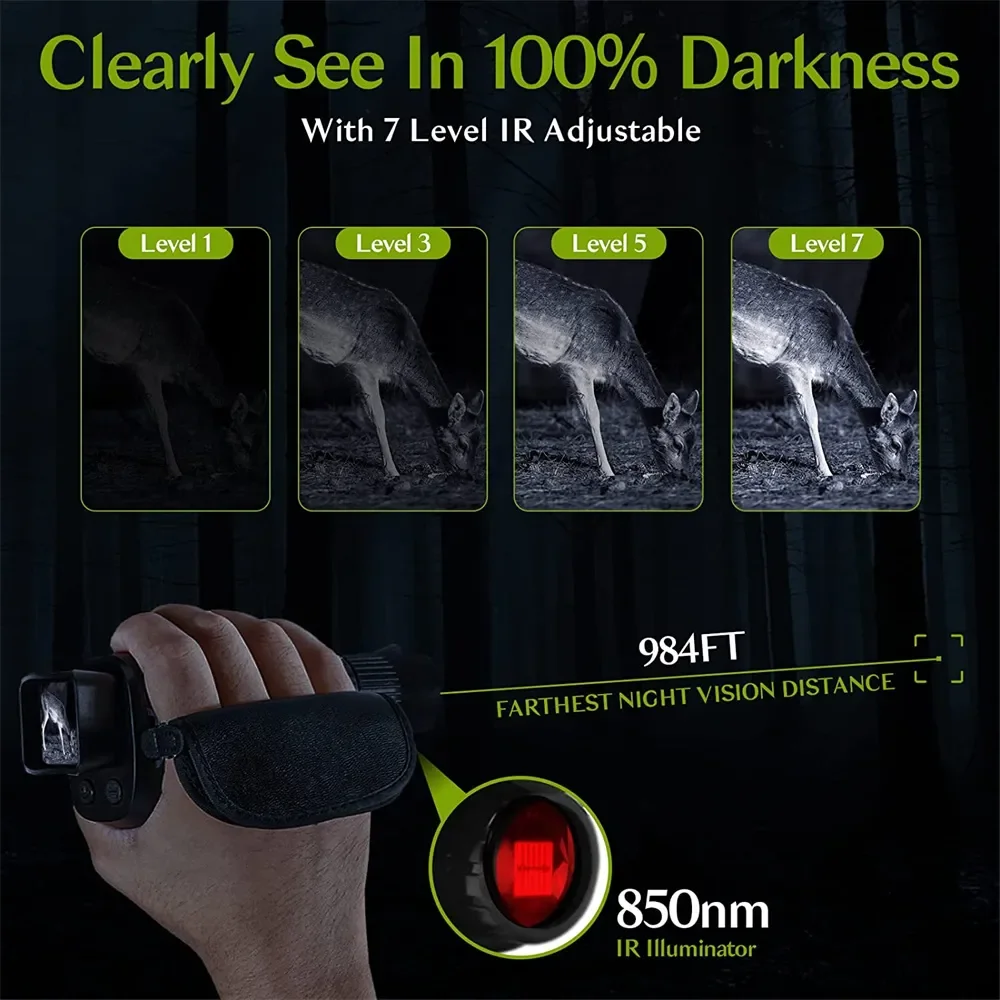 Широкое Применение: этот прибор ночного видения очень подходит для наблюдения за ландшафтом на открытом воздухе, наблюдения за животными, охоты на открытом воздухе, путешествий и т. Д.