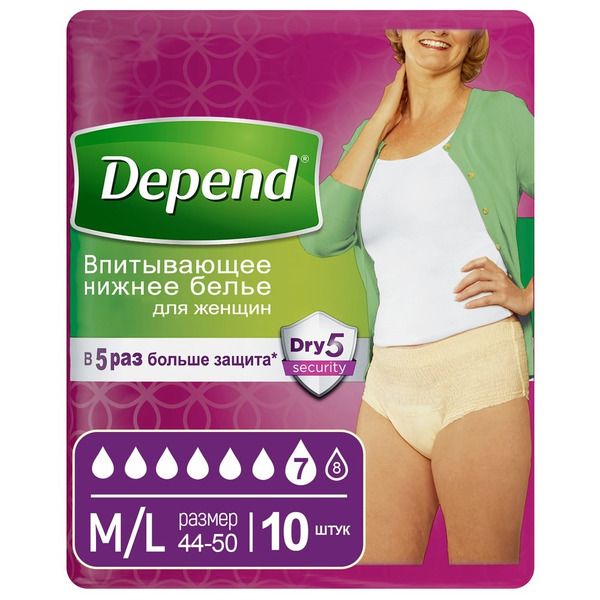 Подгузники-трусы Depend для женщин размер 44-50 (M/L), 10 штук 1 пачка