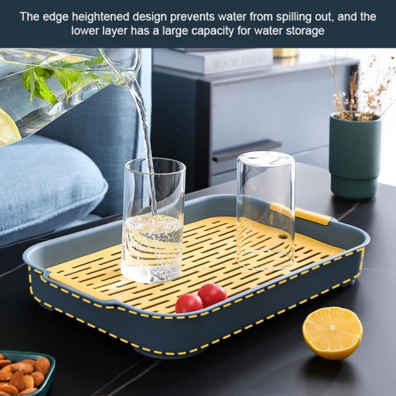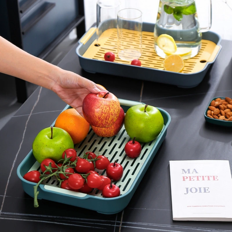 Чашка для воды сливной поднос для дома и гостиной двойной поднос прямоугольный поднос для чая Фруктовая тарелка Пластиковая креативная тарелка для еды