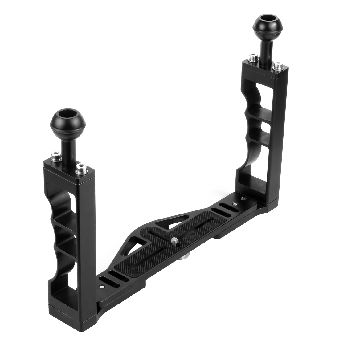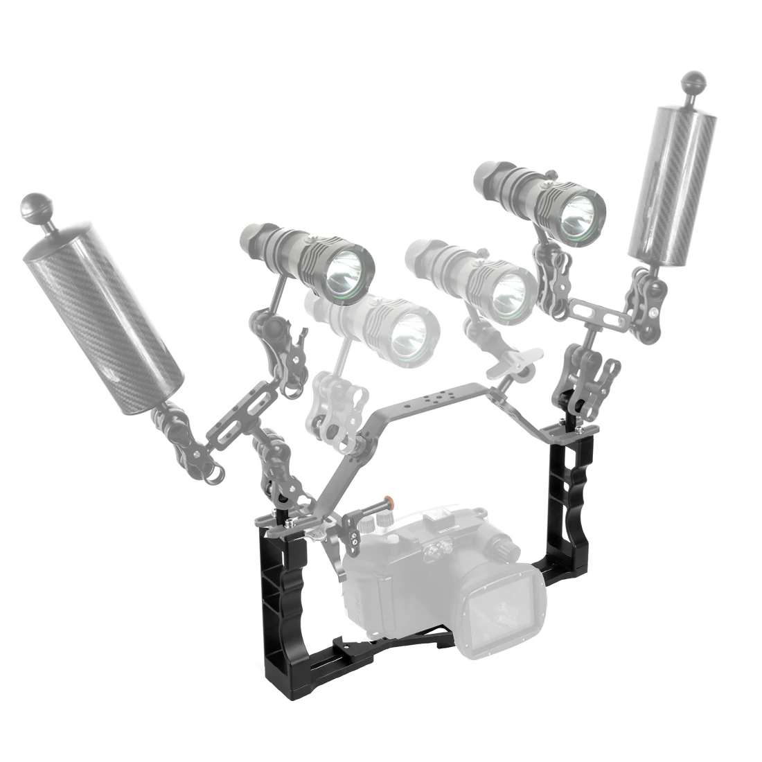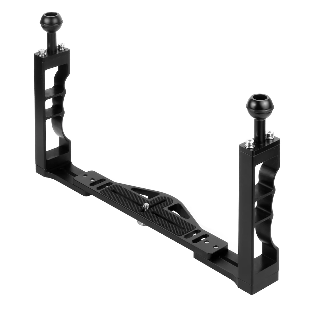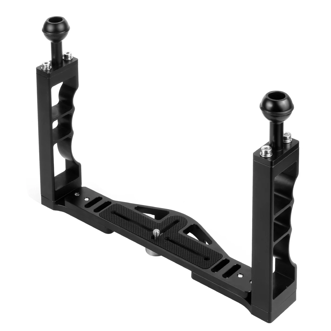 Алюминиевый сплав двойной ручной Дайвинг регулируемый кронштейн комплект для GOPRO для DJI Osmo действий и других спортивных камер, микро-один, SLR Камера Водонепроницаемый Чехол, в том числе Canon, Sony, Nikon, Panasonic, Olympus и т. Д.