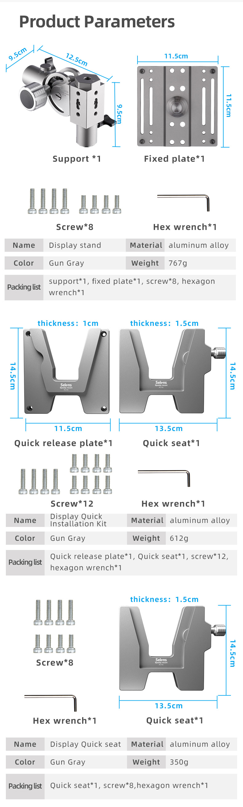БЫСТРОРАЗЪЕМНАЯ пластина * 1, быстрое сиденье * 1, винт * 12, шестигранный ключ * 1