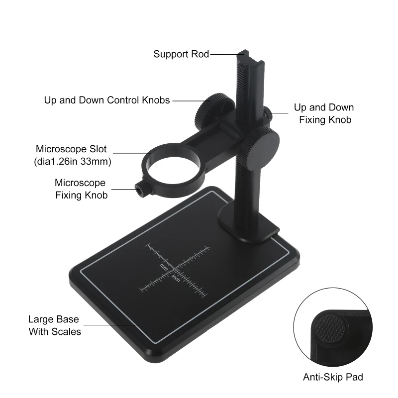 Подставка для микроскопа обеспечивает бесперебойную работу камеры вверх и вниз и делает фокусировку оснасткой.