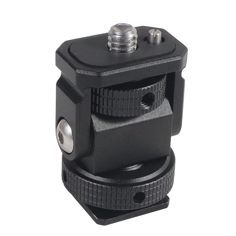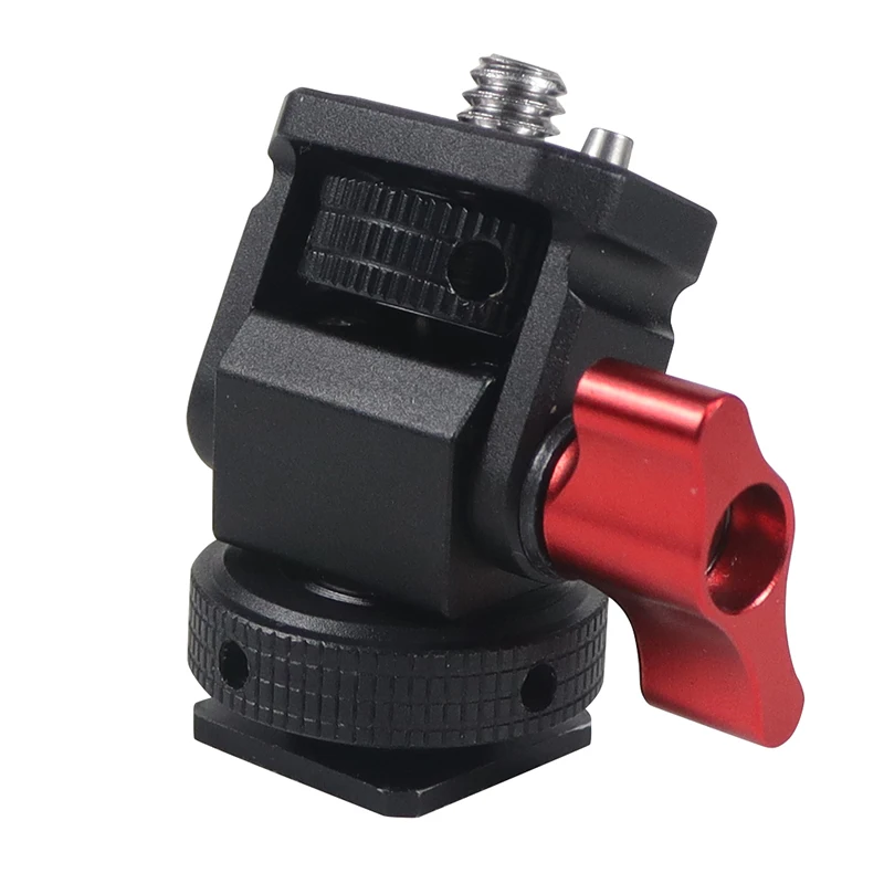 Новое регулируемое по шарниру и наклону крепление для монитора с креплением для холодного башмака предназначено для удержания монитора на верхней части камеры или другой системы крепления с помощью адаптера для холодного башмака. Он оснащен винтом 1/4 "-20 сверху для монитора, светильника или микрофона. Держатель позволяет поворачиваться на 360 ° вбок и наклоняться на 180 ° со свободным упором в любом положении. Дно с резьбовым отверстием 3/8 дюйма может быть установлено и соединено с винтовыми устройствами 3/8 дюйма или винтовыми устройствами 1/4 дюйма с преобразователем. Плотность каждой оси регулируется с помощью шестигранного ключа. Мини-размер легкий всего 33 г. Крепление монитора изготовлена из алюминия, обработанного на станке с ЧПУ, и может поддерживать монитор от 5 до 7 дюймов весом до 2, 5 кг. Поворотное и наклонное крепление имеет защитную резиновую прокладку сверху и включает шестигранный ключ для затяжки креплений для дополнительной безопасности.