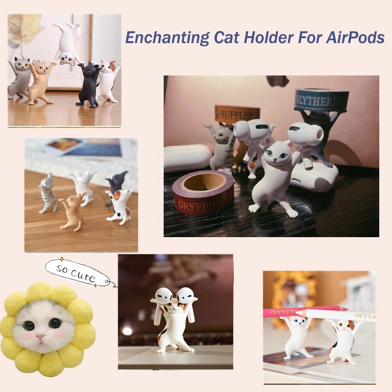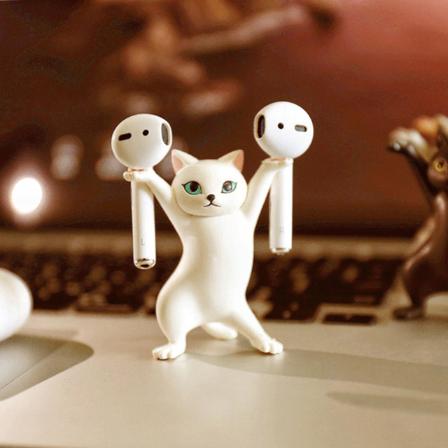 Подставка для наушников с изображением танцующей кошки для AirPods 1 2 Pro, гарнитура, держатель c Bluetooth, милая кукла, украшение ручной работы, держатель для ручки, кошка