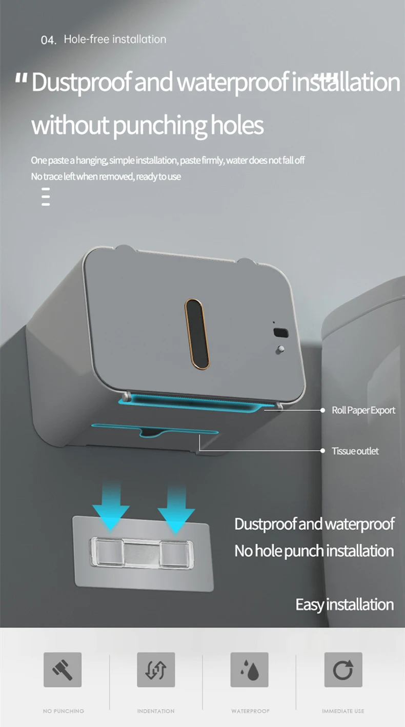 Подставка для туалетной бумаги, держатель для туалетной бумаги, Индукционная автоматическая коробка для салфеток, настенное крепление, без перфорации, туалет, ленивый, умный дом
