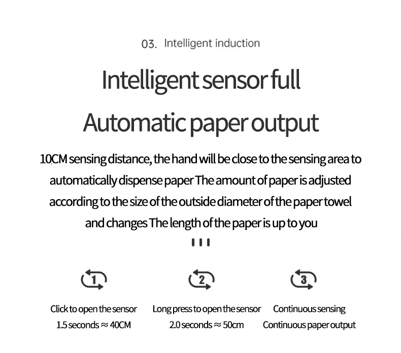 Интеллектуальный индукционный автоматический выход бумаги, расстояние индукции 10 см, рука может автоматически выводиться, когда рука находится близко к индукционной области