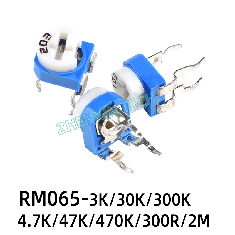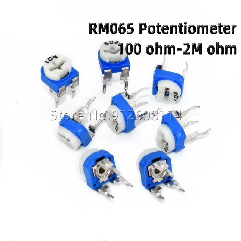 Подстроечный резистор RM065, 100, 200, 500, 1K, 2K, 4,7 K, 5K, 10K, 20K, 47K, 50K, 100K, 200K, 470K, 1M, 2M Ом