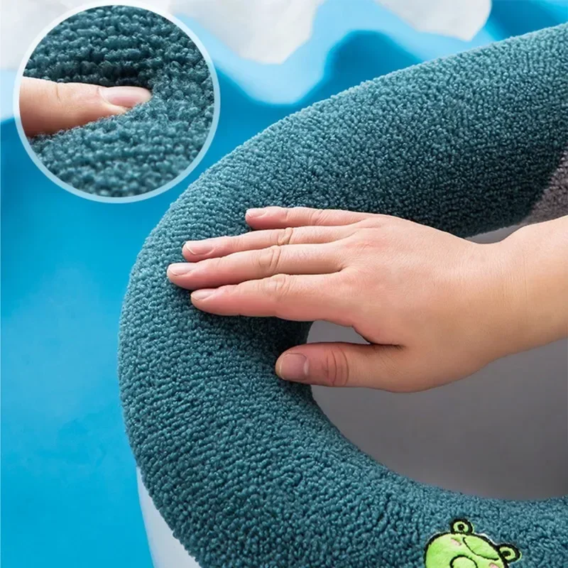 Подушка для унитаза с ручкой милый мультяшный узор чехол на сиденье унитаза мягкая теплая Подушка на молнии для сиденья унитаза универсальная O-образная