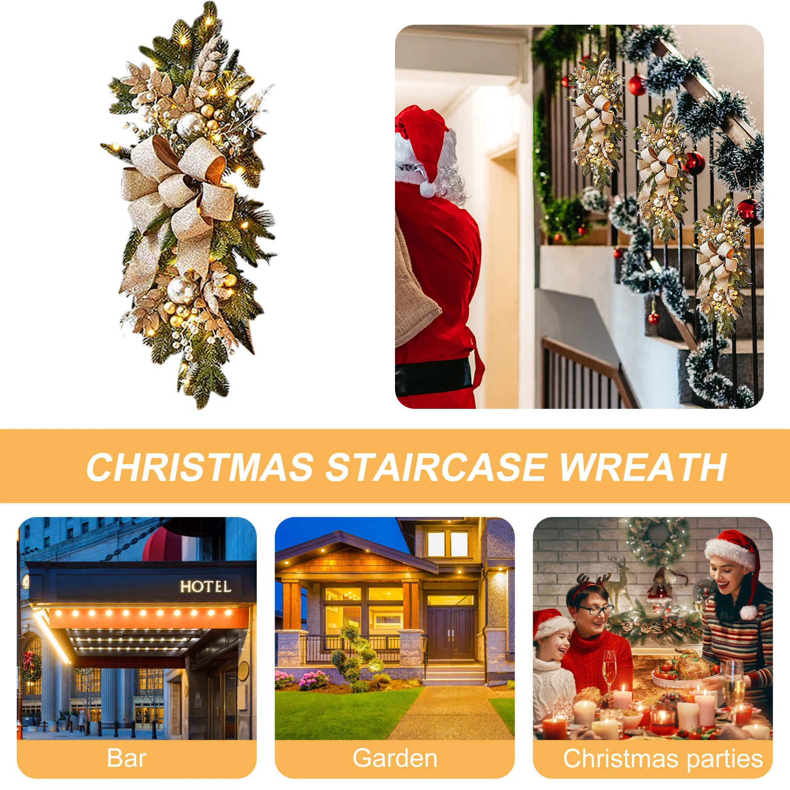 Подвесная гирлянда для лестницы, без проводов, подсветка лестницы, декоративные осветительные приборы, рождественское светодиодное украшение для лестницы, дверной венок