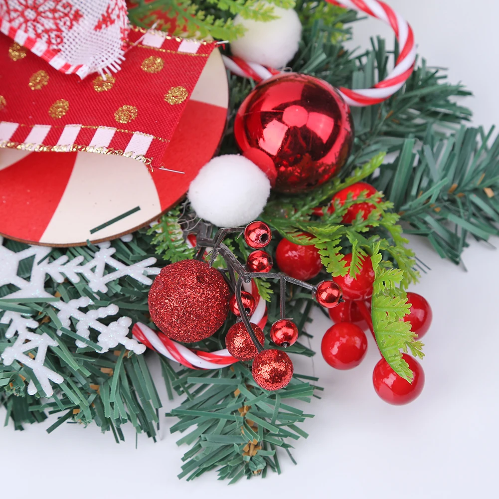 Искусственные ягоды сосновые шишки венок художественные ремесла ПВХ бант Рождественская гирлянда с струнным светом светящиеся праздничные подарки украшения дома