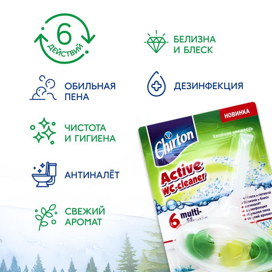 Подвесной блок для унитаза Chirton "Хвойная свежесть" шарики очищающие от загрязнений, бактерий и запаха, 45 г