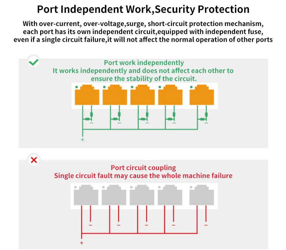 ◆ Каждый порт макс. источник питания достиг 30 Вт.