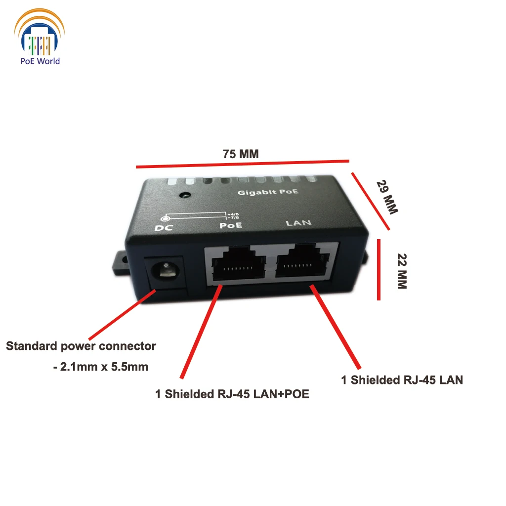10/100/1000 гигабит Ethernet, используется как инжектор PoE или разветвитель PoE.