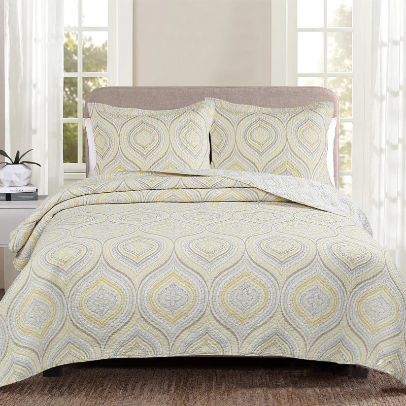 Покрывало хлопковое для двуспальной кровати, комплект стеганого одеяла с принтом, 3 шт., стеганое покрывало на кровать, летнее покрывало большого размера