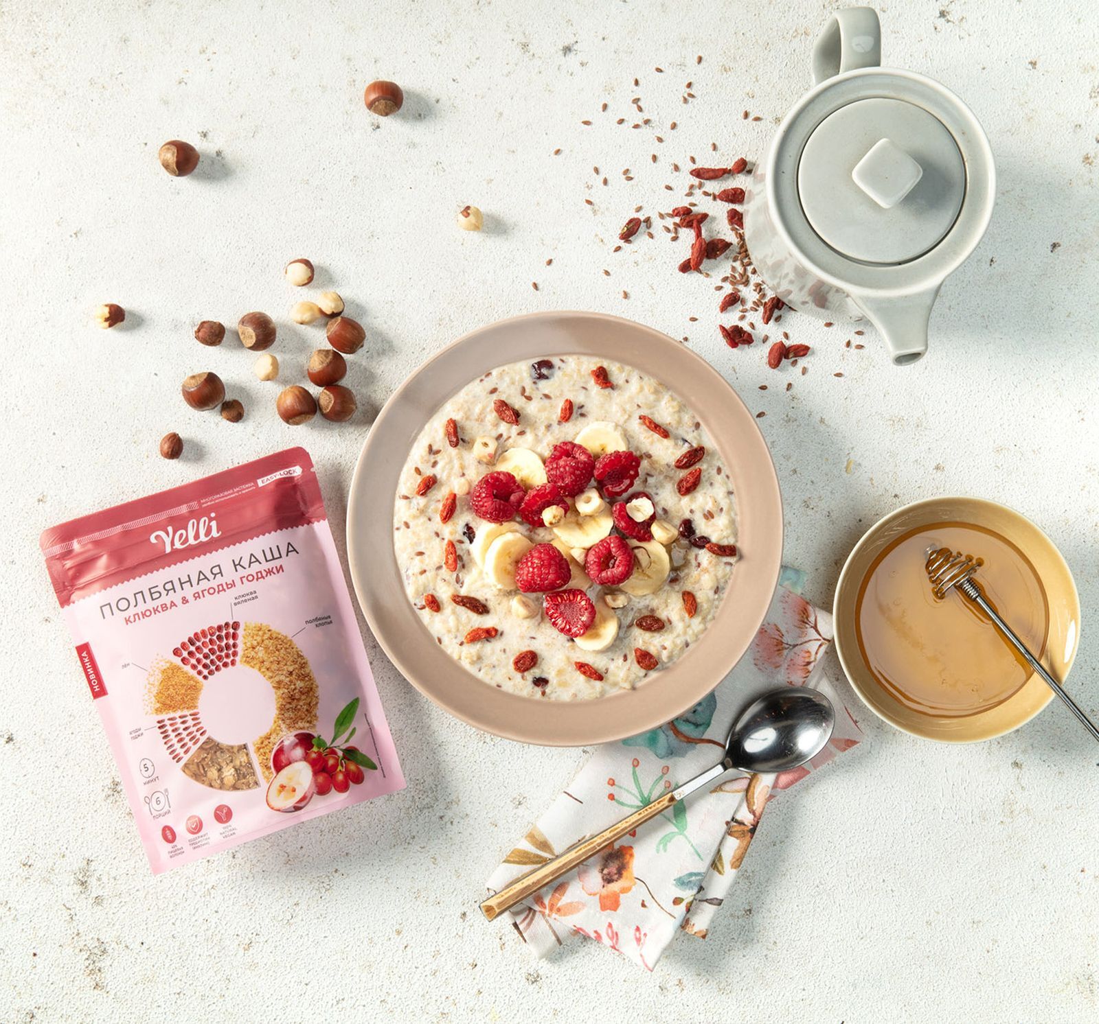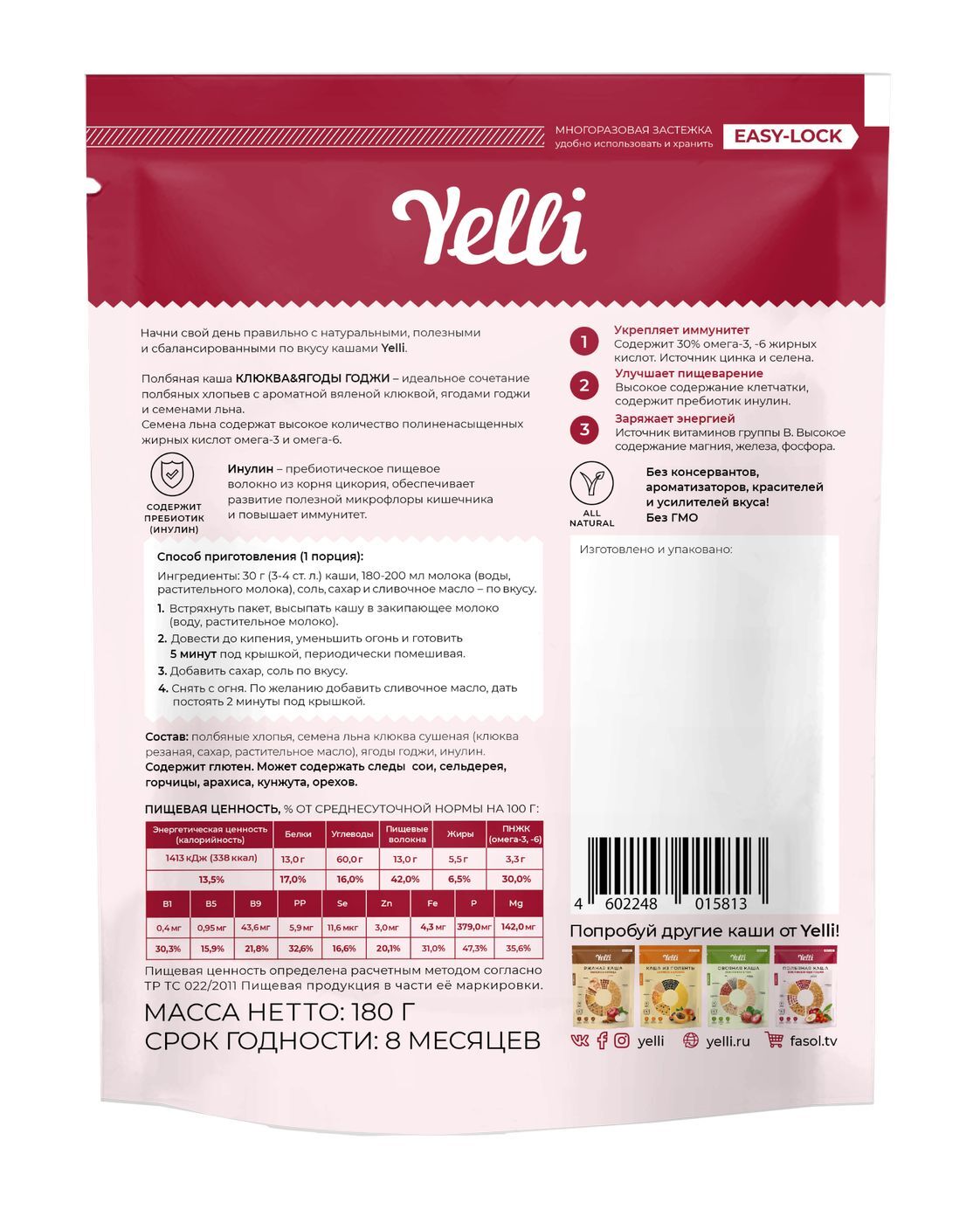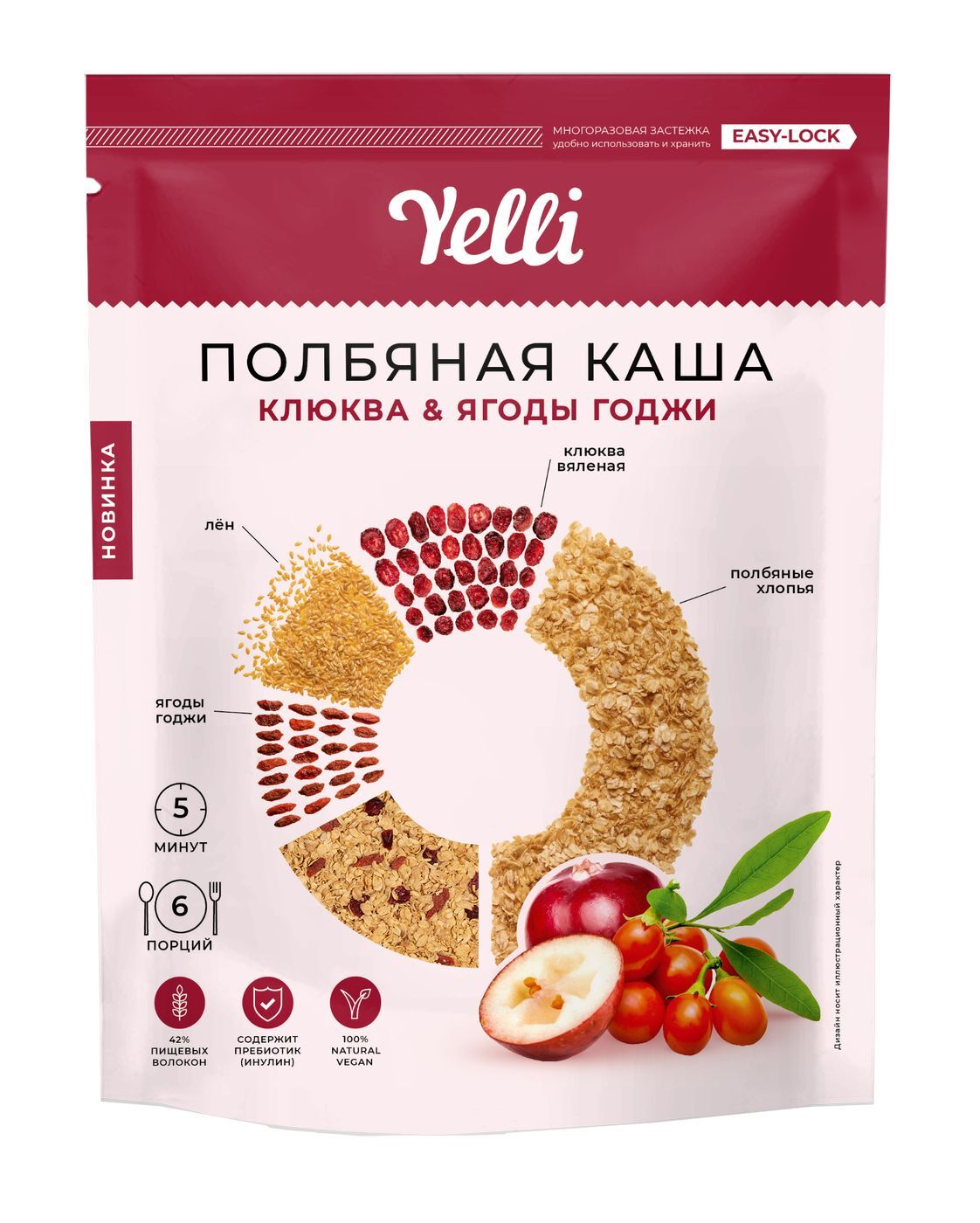Полбяная каша клюква и ягоды годжи Yelli, 180 г