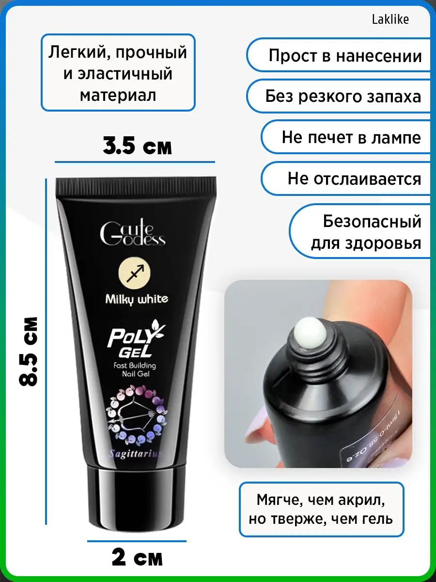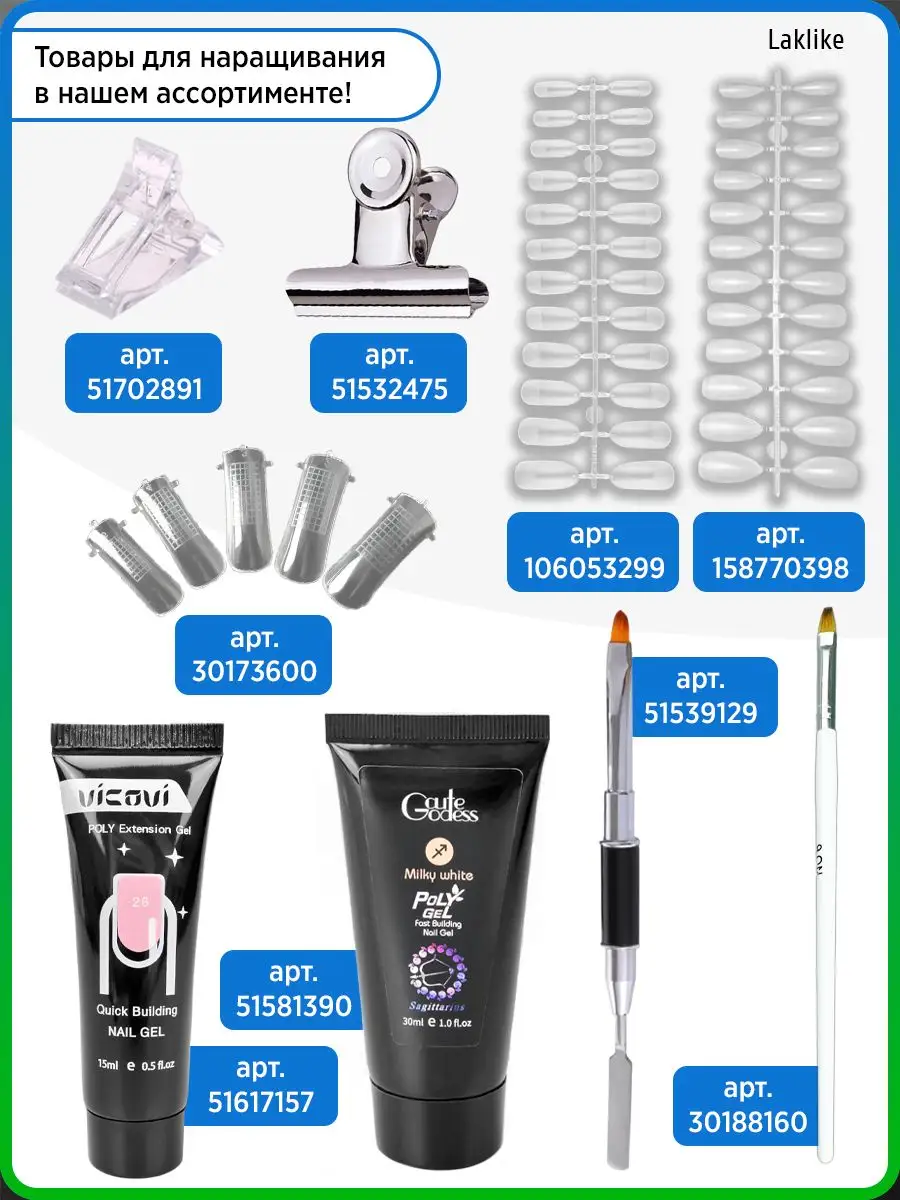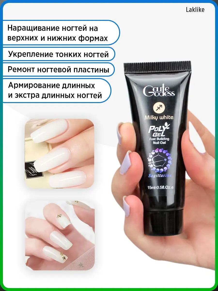 Комплектация гель-1 шт; Акригель 15 мл.; 1 акрил-гель для наращивания ногтей; полигель для наращивания и укрепления ногтей; акриловый гель для наращивания ногтей