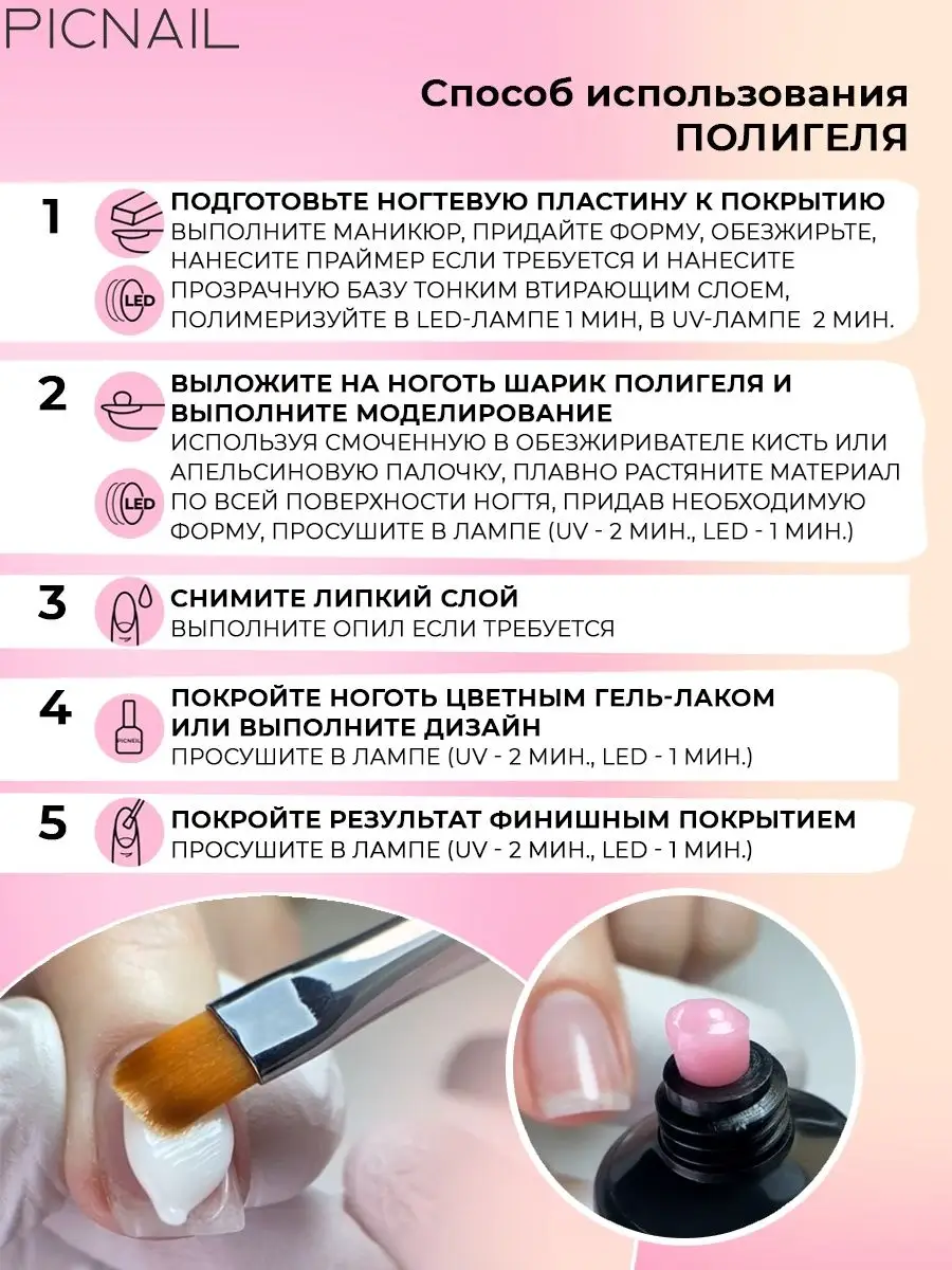 Полигель для наращивания и моделирования ногтей прозрачный