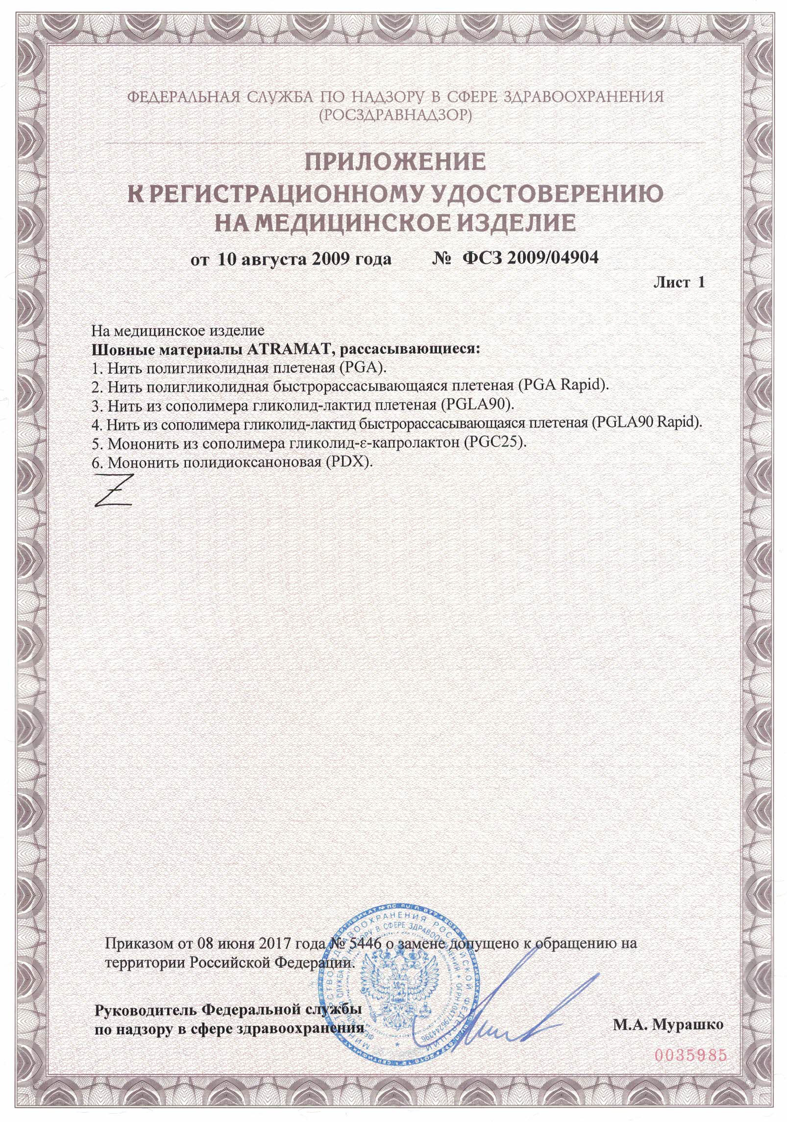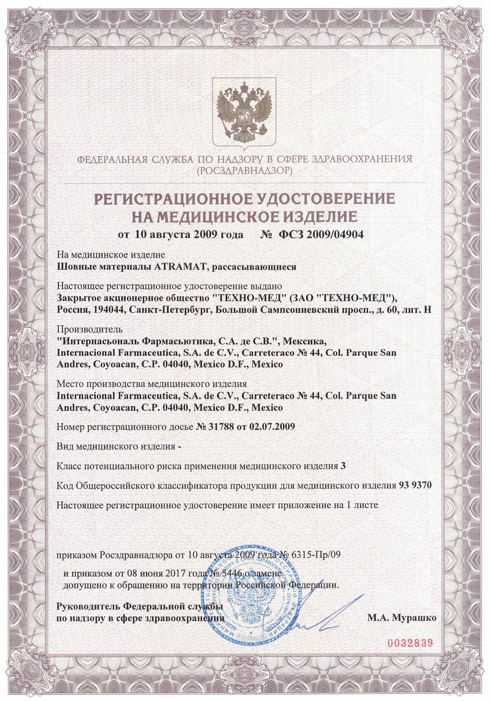 • Регистрационный номер медицинского изделия: ФСЗ 2009/04904