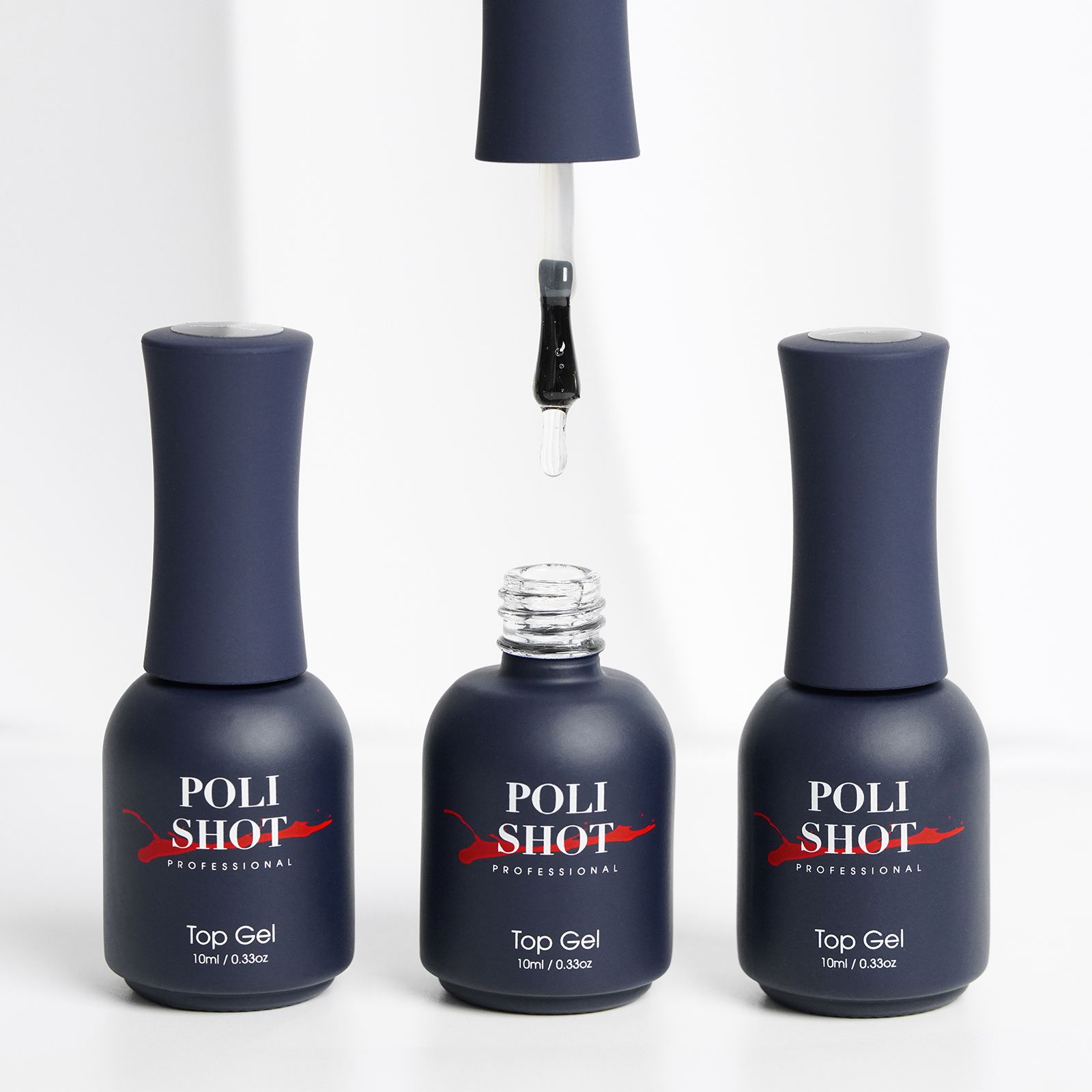 POLISHOT TOP RUBBER, ТОП Каучуковый для гель-лаков, топ без липкого слоя / для маникюра /для педекюра/UV/LED (10 мл.)