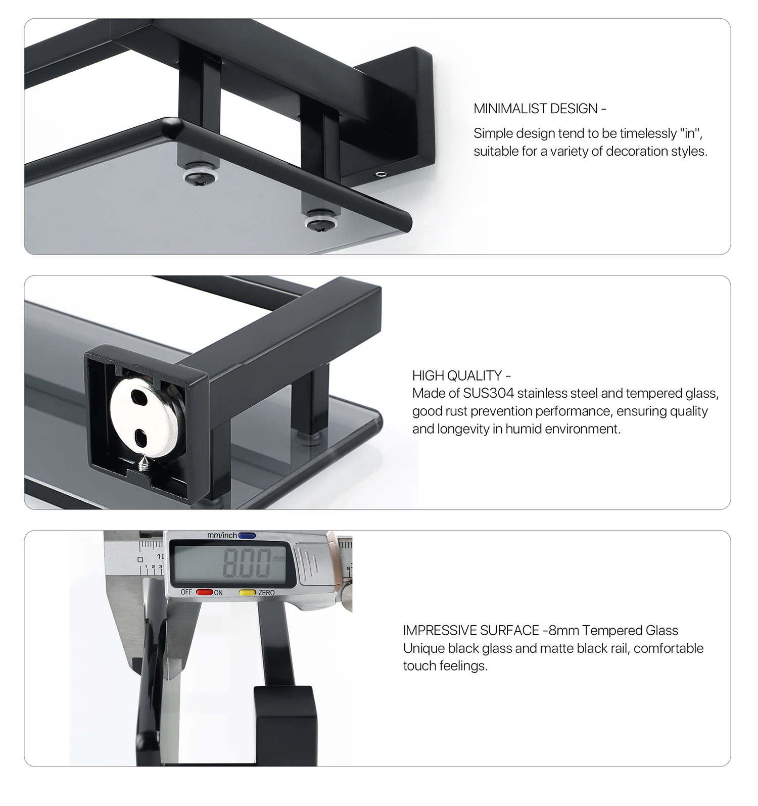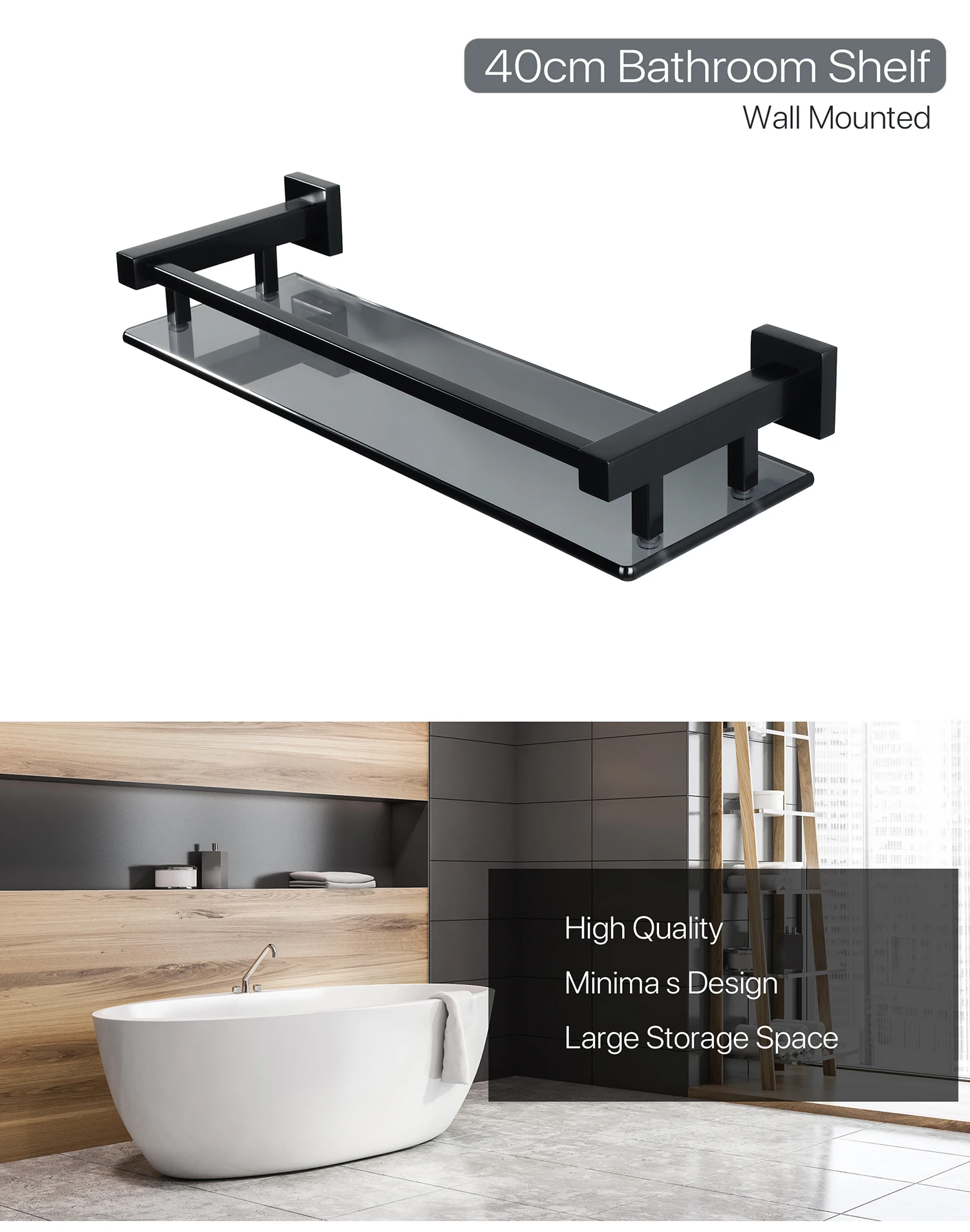 Полка для ванной комнаты 40 см из закаленного черного стекла