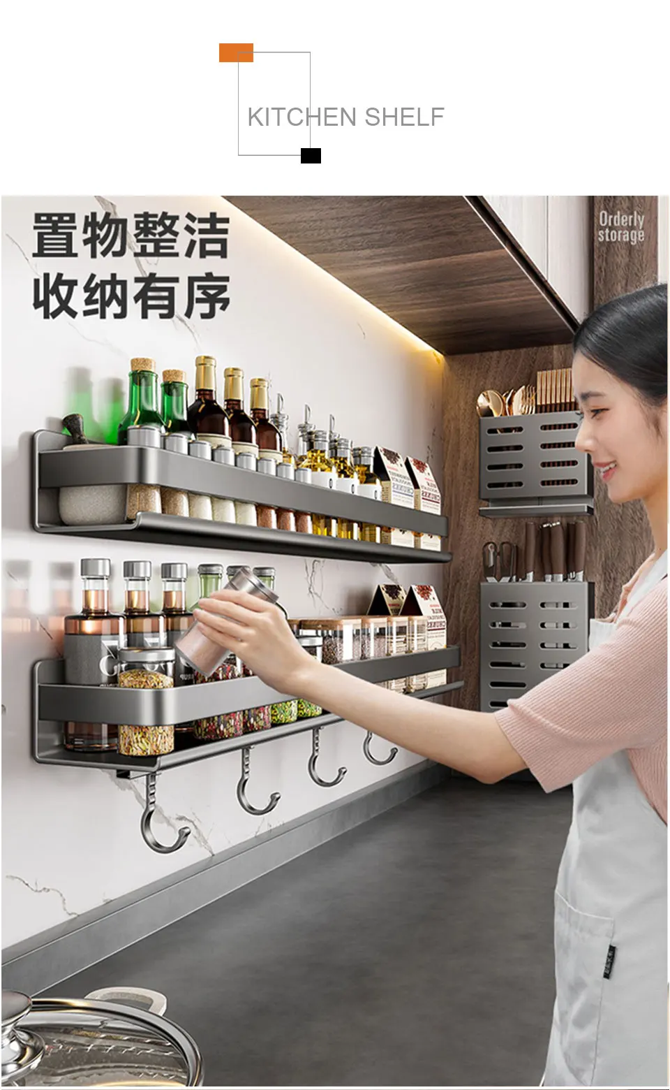 Полка-органайзер для специй, настенная полка-органайзер для хранения черных специй и кладовой, полки для кухни, принадлежности для домашней организации