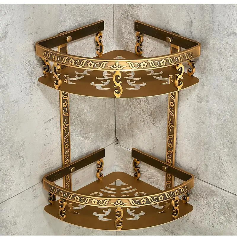 Полки для ванной комнаты без гвоздей, 2 слоя, Античная Металлическая угловая полка для душа, настенное крепление, полка для хранения шампуня