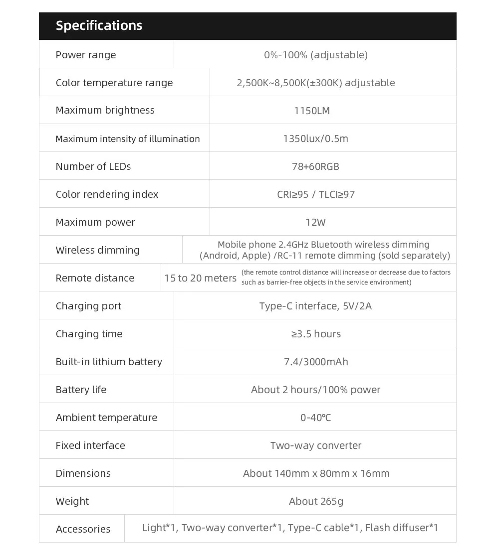 Диапазон цветовой температуры: 2,5OOK ~ 8,50OK (adjustable 30OK) регулируемый