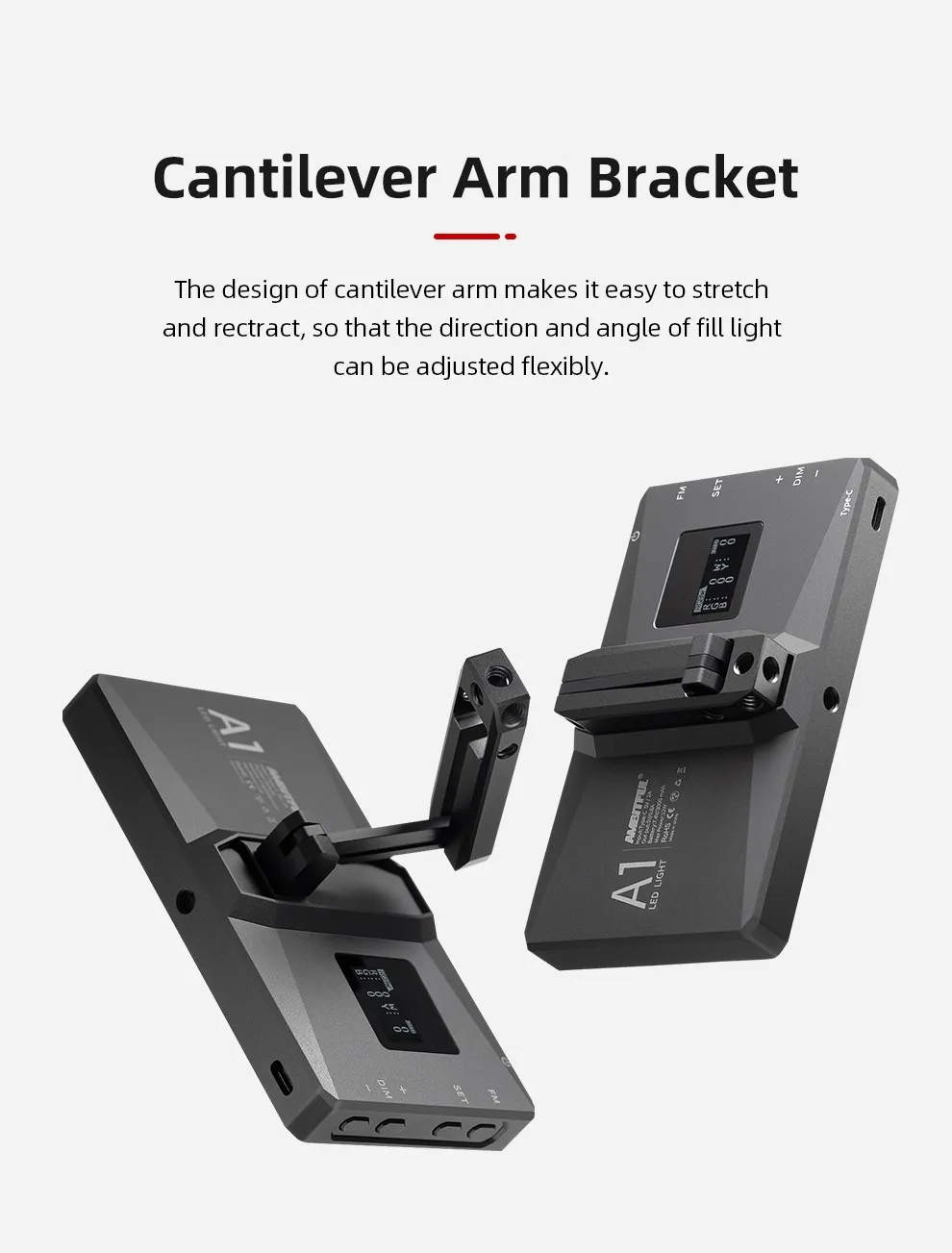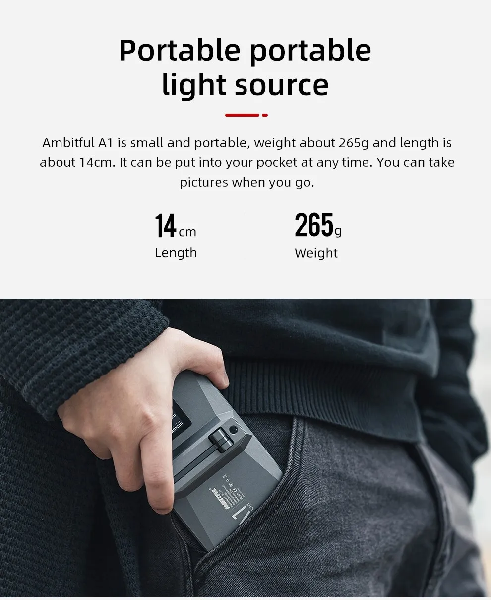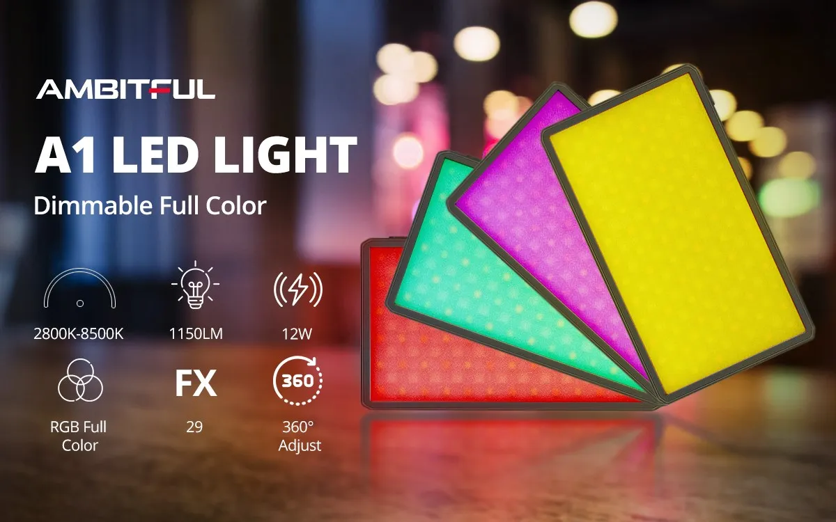 Полноцветный светодиодный светильник AMBITFUL A1 RGB 2500K-8500K с регулируемой яркостью, консольный кронштейн с приложением для DSLR-камеры, подсветка для прямого эфира