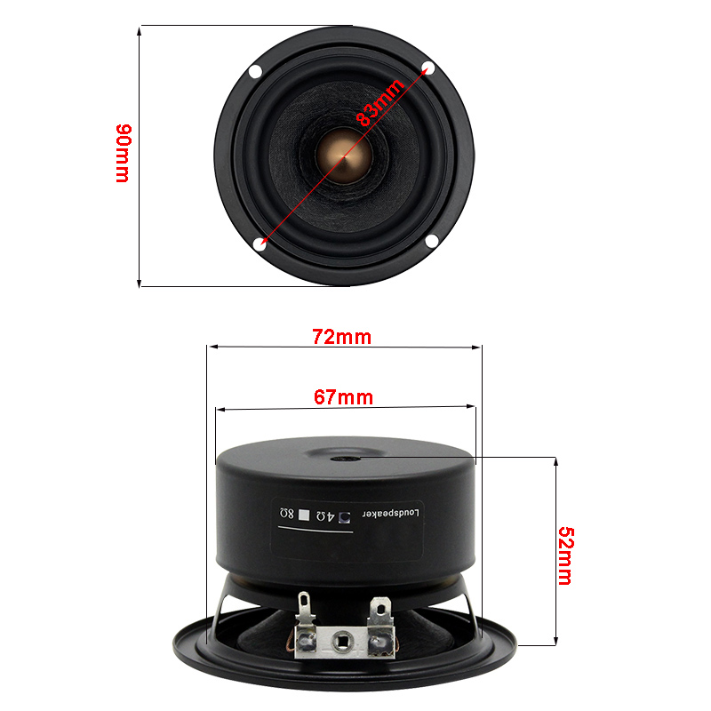 Полнодиапазонный динамик 3,5 дюйма, 15 Вт, 4 Ом, 8 Ом, Hi-Fi аудио динамик 90 мм