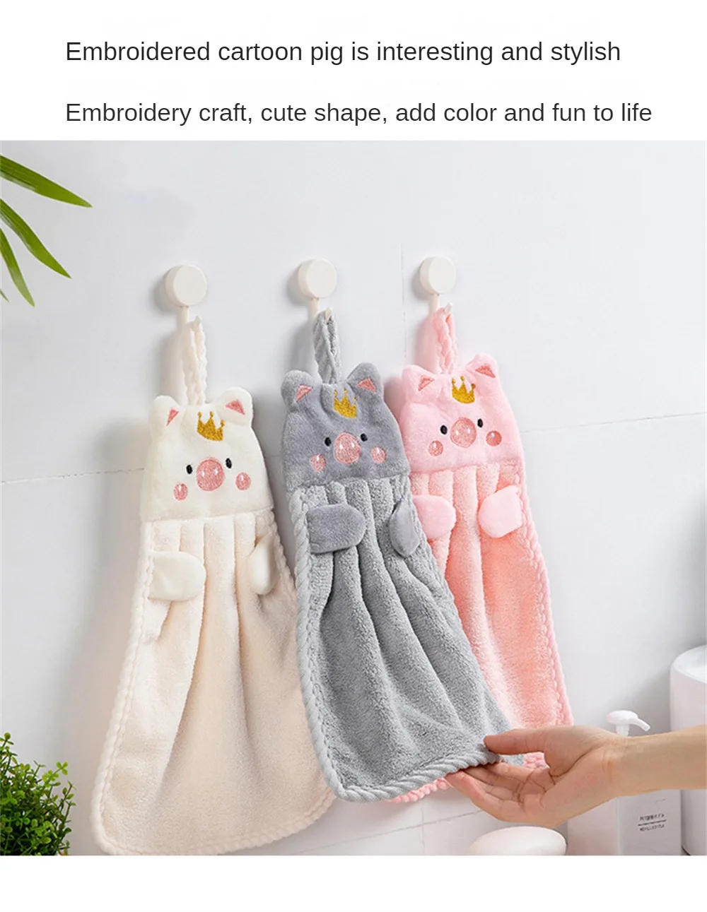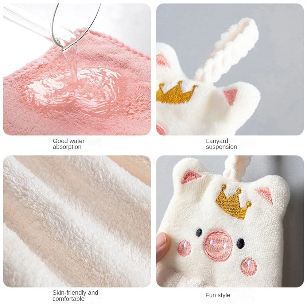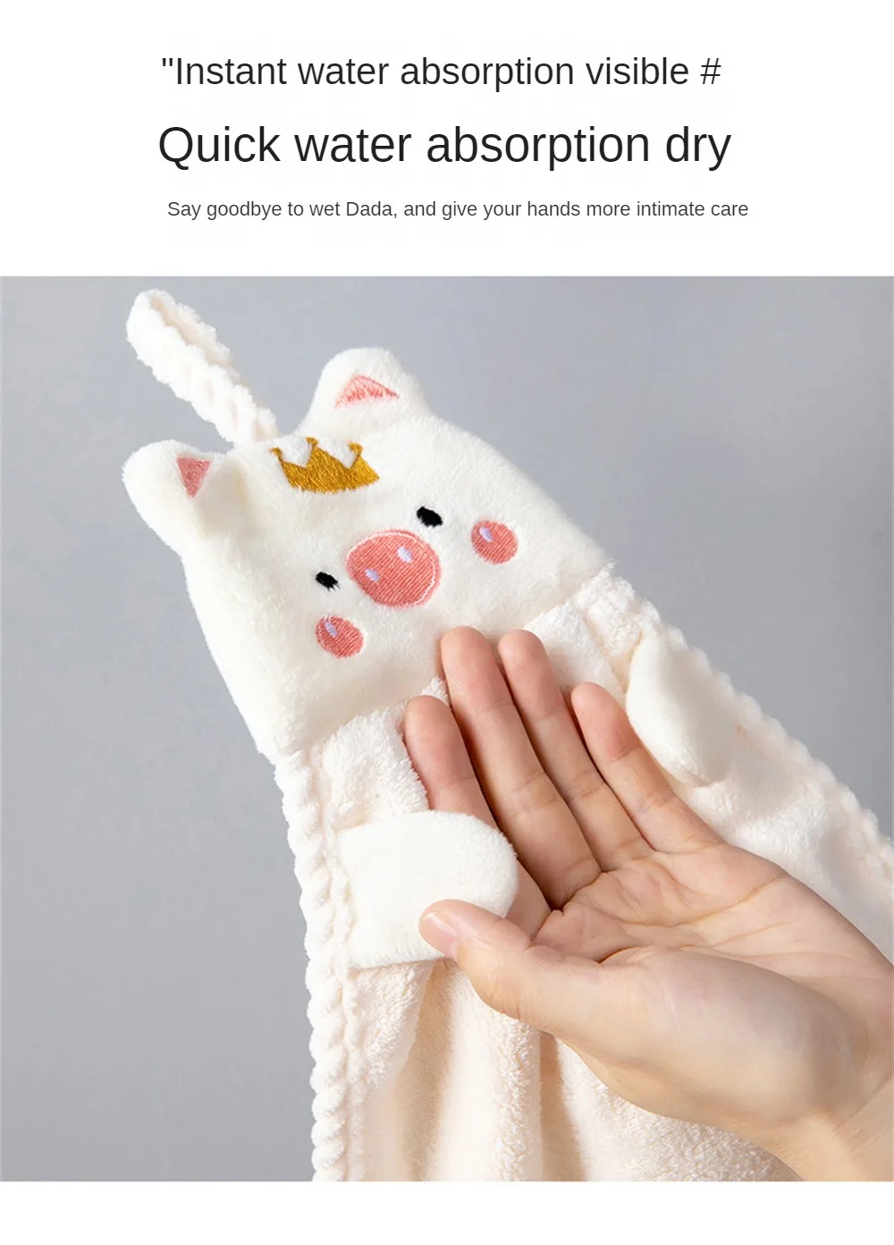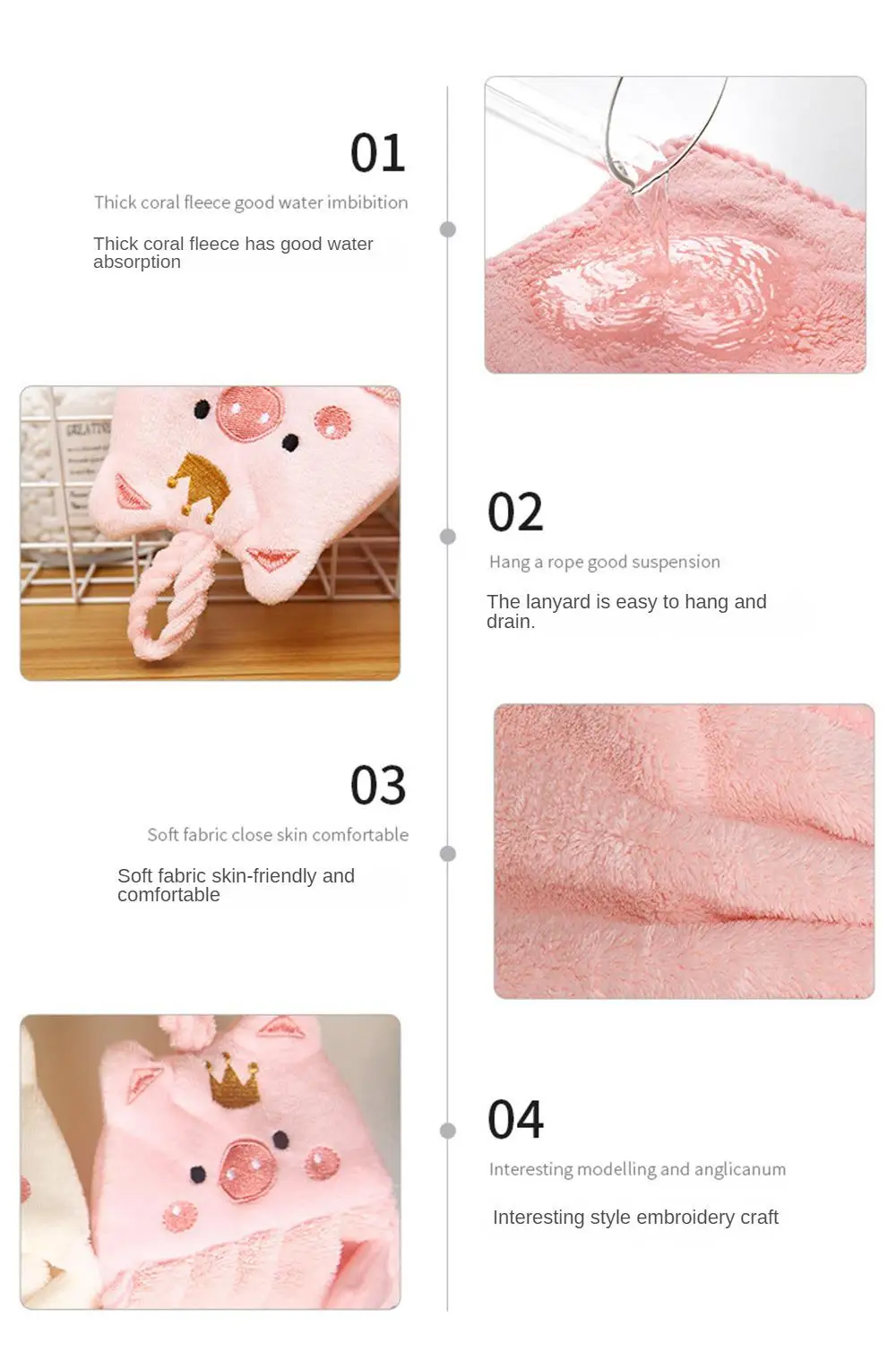 Полотенце для рук из кораллового флиса Милый мультяшный стиль Подвесное полотенце для мытья посуды Бытовые чистящие средства Кухонное полотенце для рук
